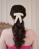 This pearl bow is a flawless addition to any outfit. Made with quality craftsmanship and elegance in mind, it adds a touch of sophistication to any look. The delicate pearl detailing creates a timeless and classic appeal, perfect for any formal event or special occasion. Elevate your style with this stunning accessory.