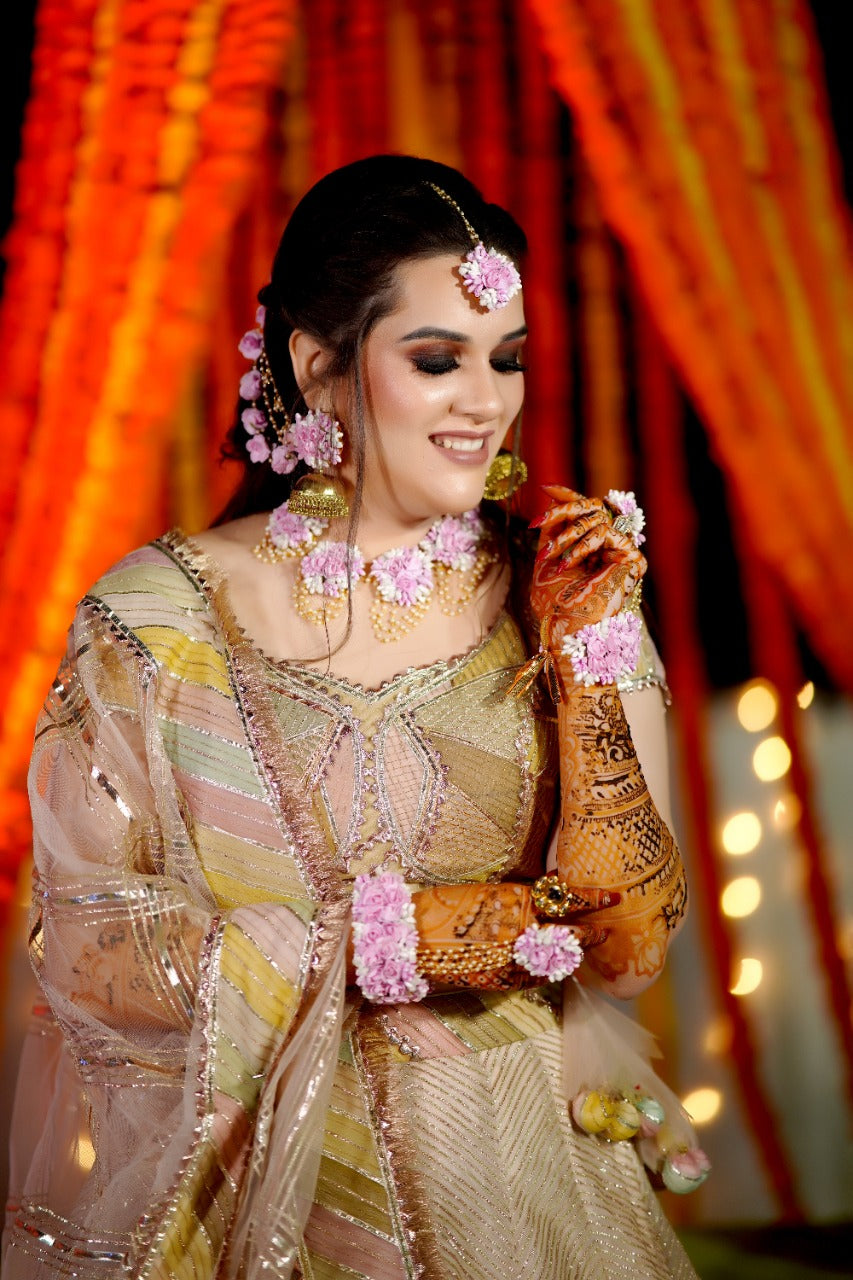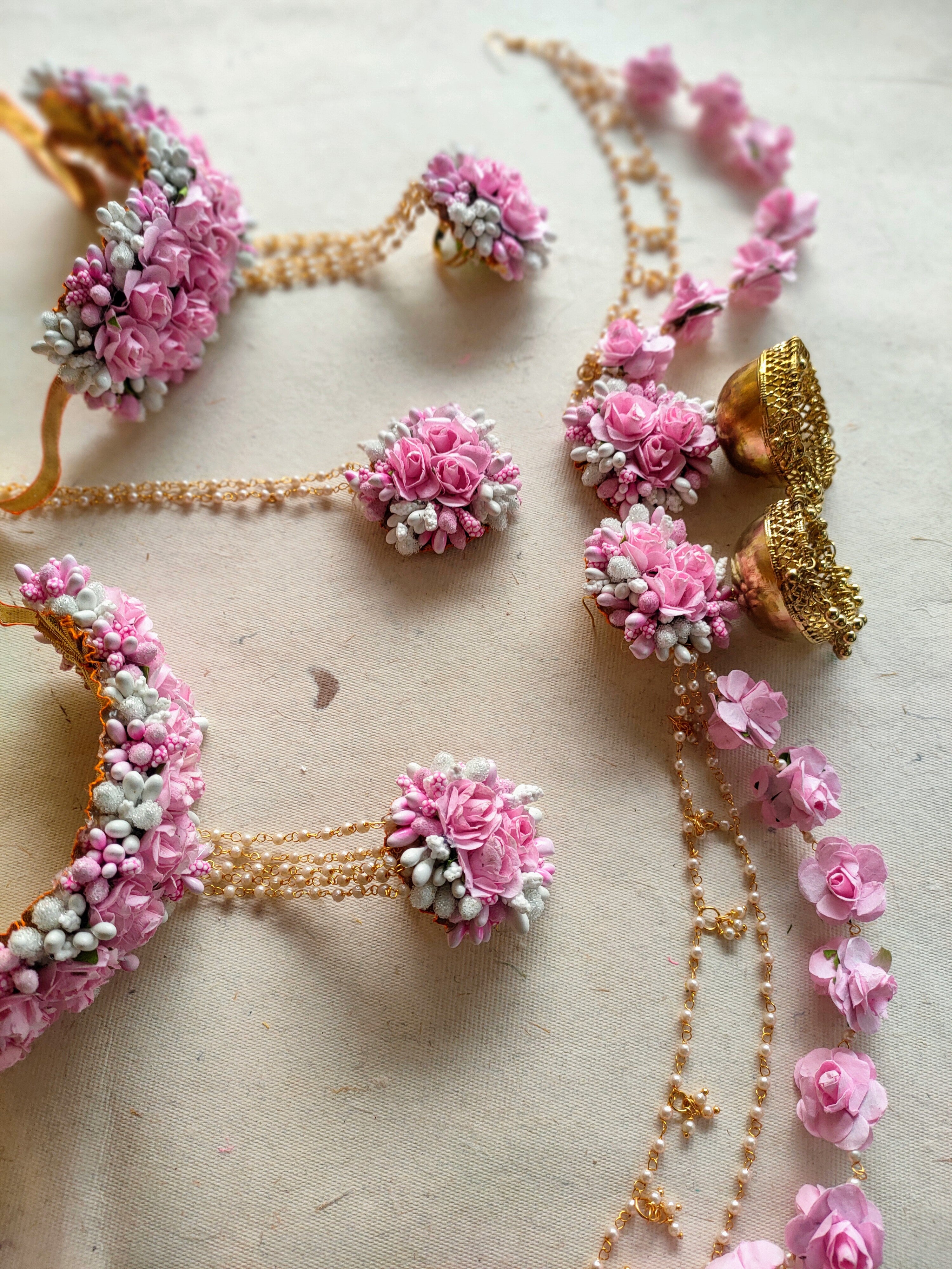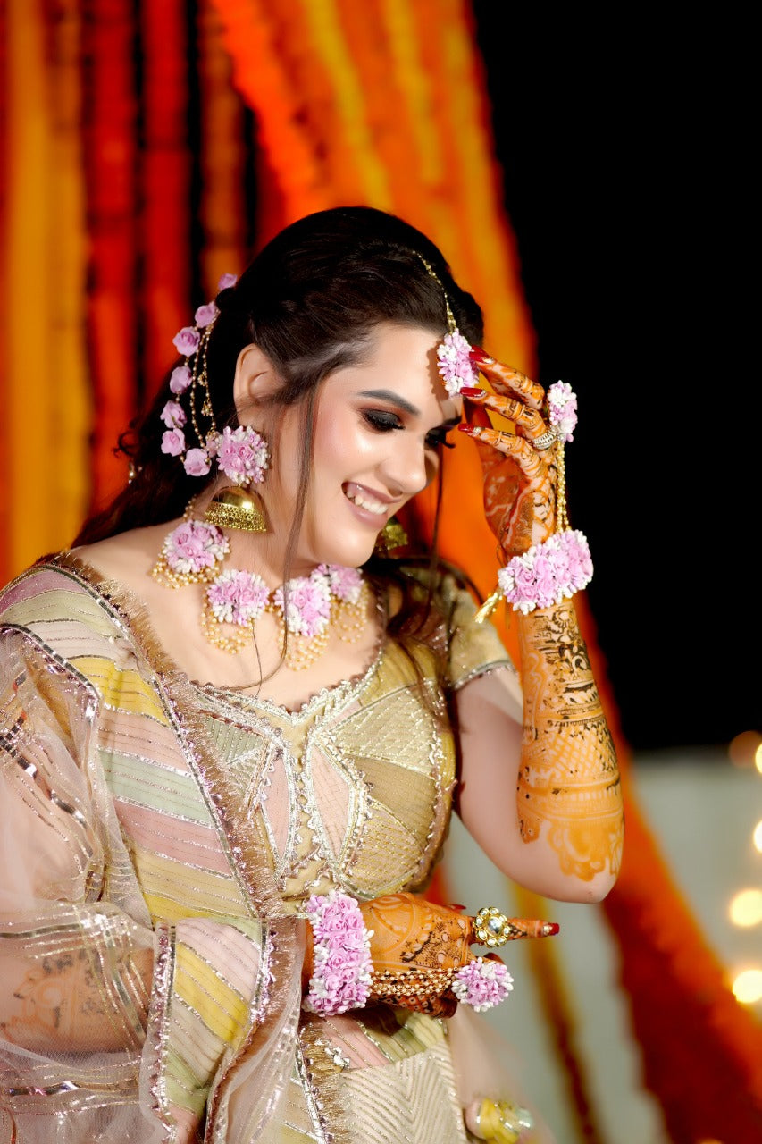 Embark on a journey of poetic elegance with our enchanting wedding jewellery. Intricately designed with delicate flowers and exquisite pearl embellishments, each piece tells a story of love, beauty, and everlasting grace, making it a stunning symbol of your eternal commitment on your special day.