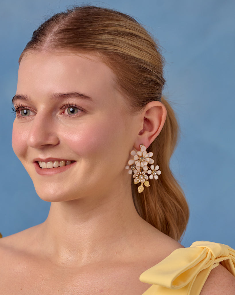 The Calla Earrings feature soft, sculpted resin petals that curve gracefully, creating a polished and luminous frame for the face. Their lightweight design and refined silhouette make them the perfect blend of modern elegance and delicate femininity — ideal for the bride who prefers quiet luxury.