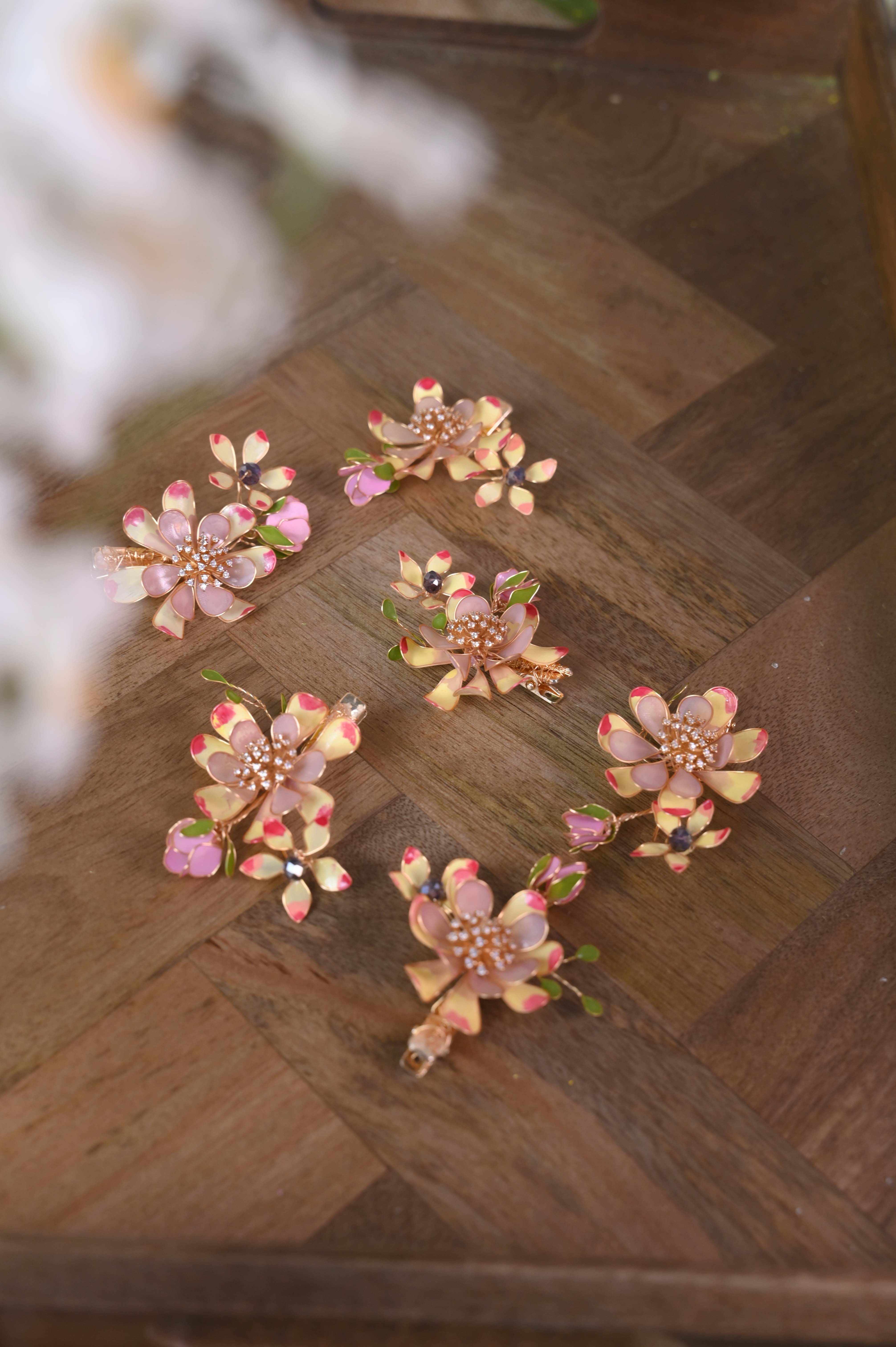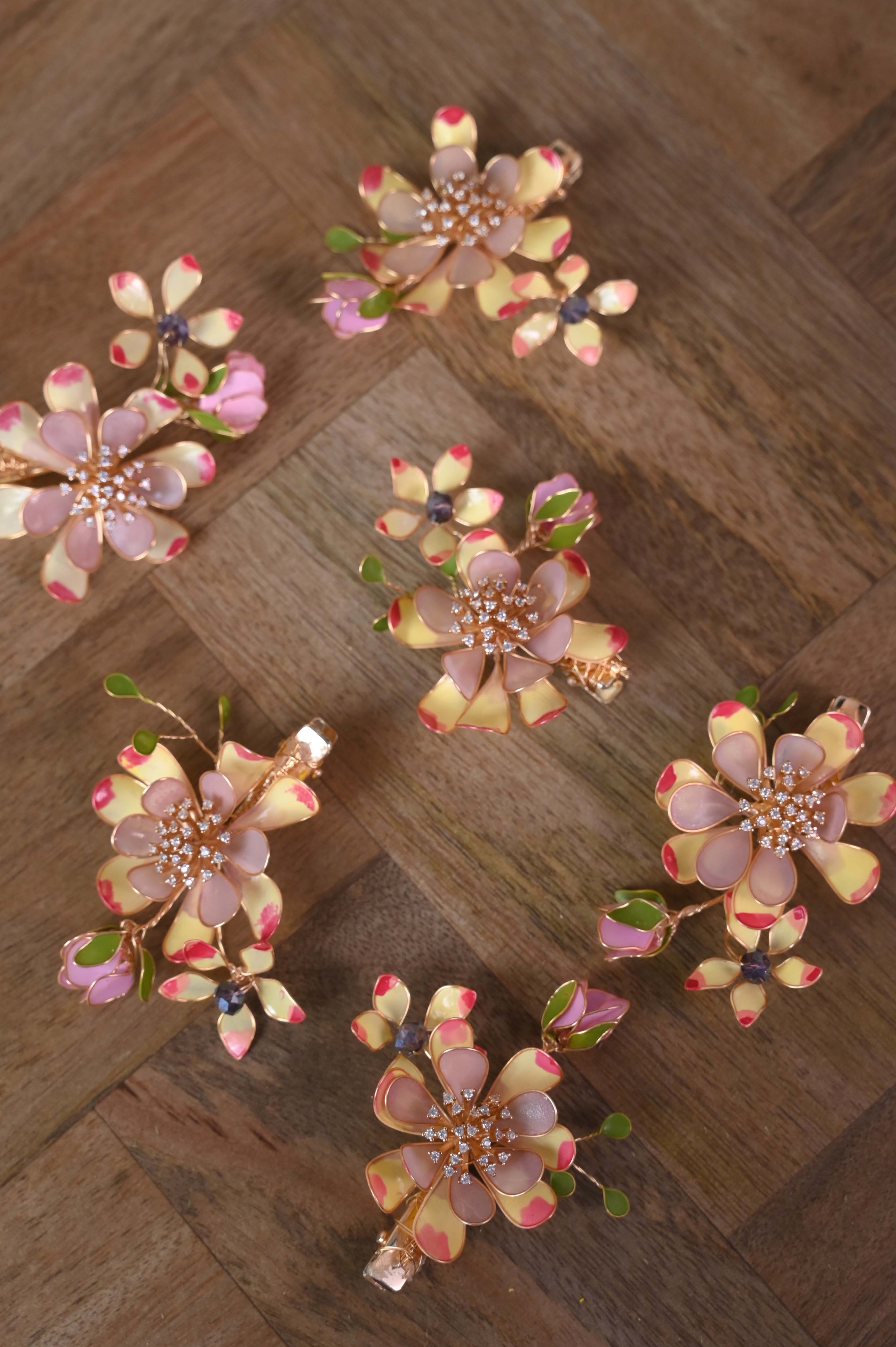 The Celoura Hairpin offers a modern interpretation of floral elegance. Its smooth resin detailing and gentle curves create a soft yet impactful visual statement. Perfect for contemporary bridal styling, Celoura adds an understated glow and professional refinement to any hairstyle.