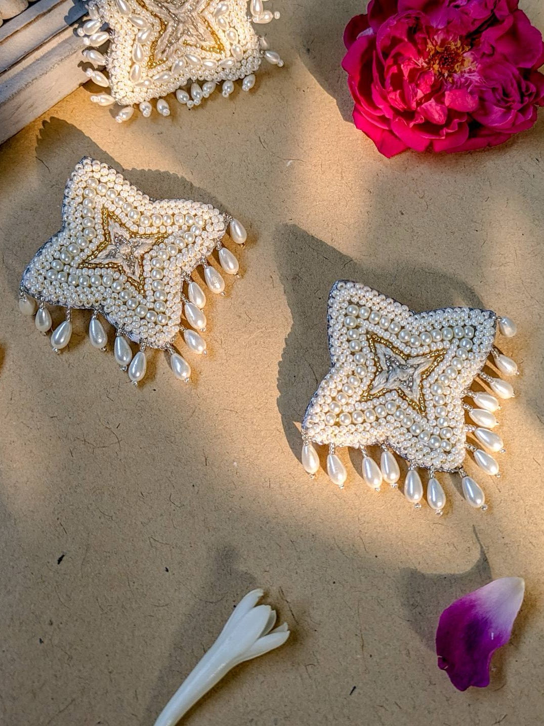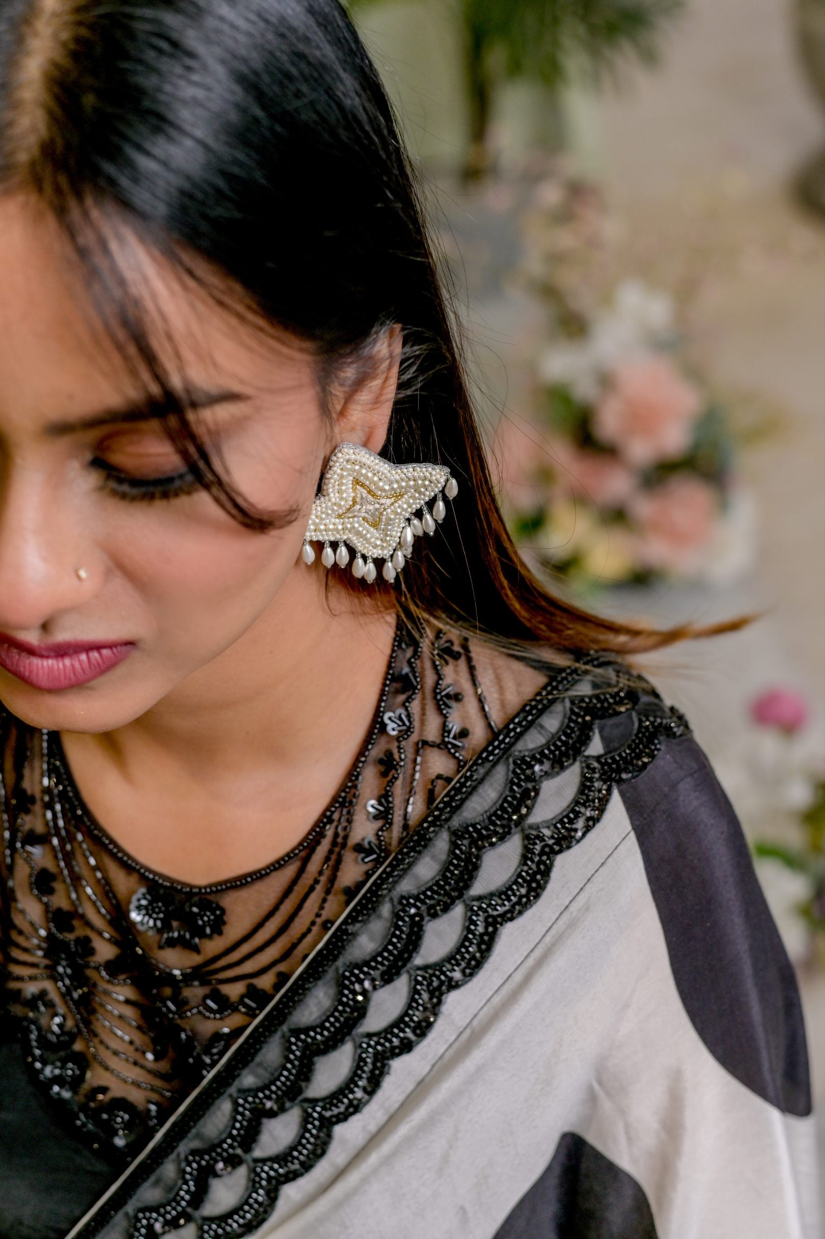 Description -Whether gracing your ears for a special occasion or adding a touch of everyday elegance, these studs effortlessly elevate your style. Adorn yourself with the understated beauty of pearls and the artistry of embroidery, celebrating the union of tradition and modern sophistication in a pair that captivates with every nuanced detail.