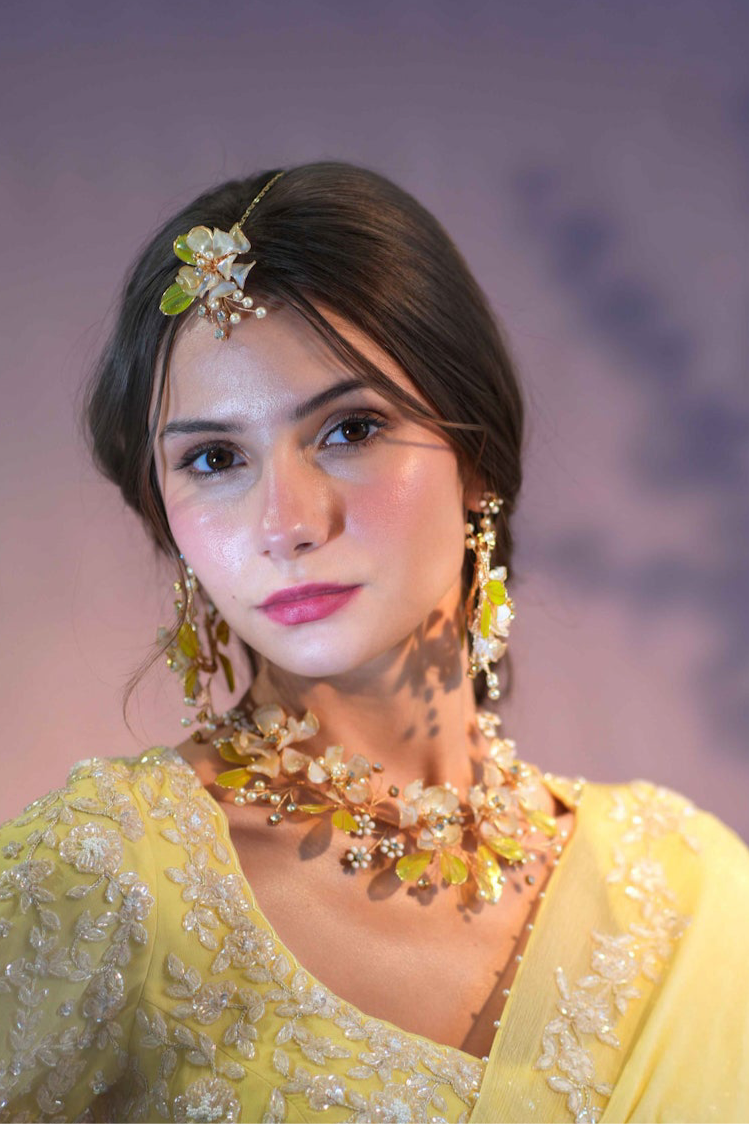 • Set includes:Necklace,maangtika,bracelet +ring (single piece) and Earrings