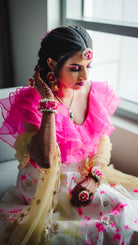 Enhance your traditional look with the Ruhi set. The intricately designed Haldi Menhdi jwellery will add a touch of elegance to your attire. Made with precision and care, this set will make you stand out from the crowd.