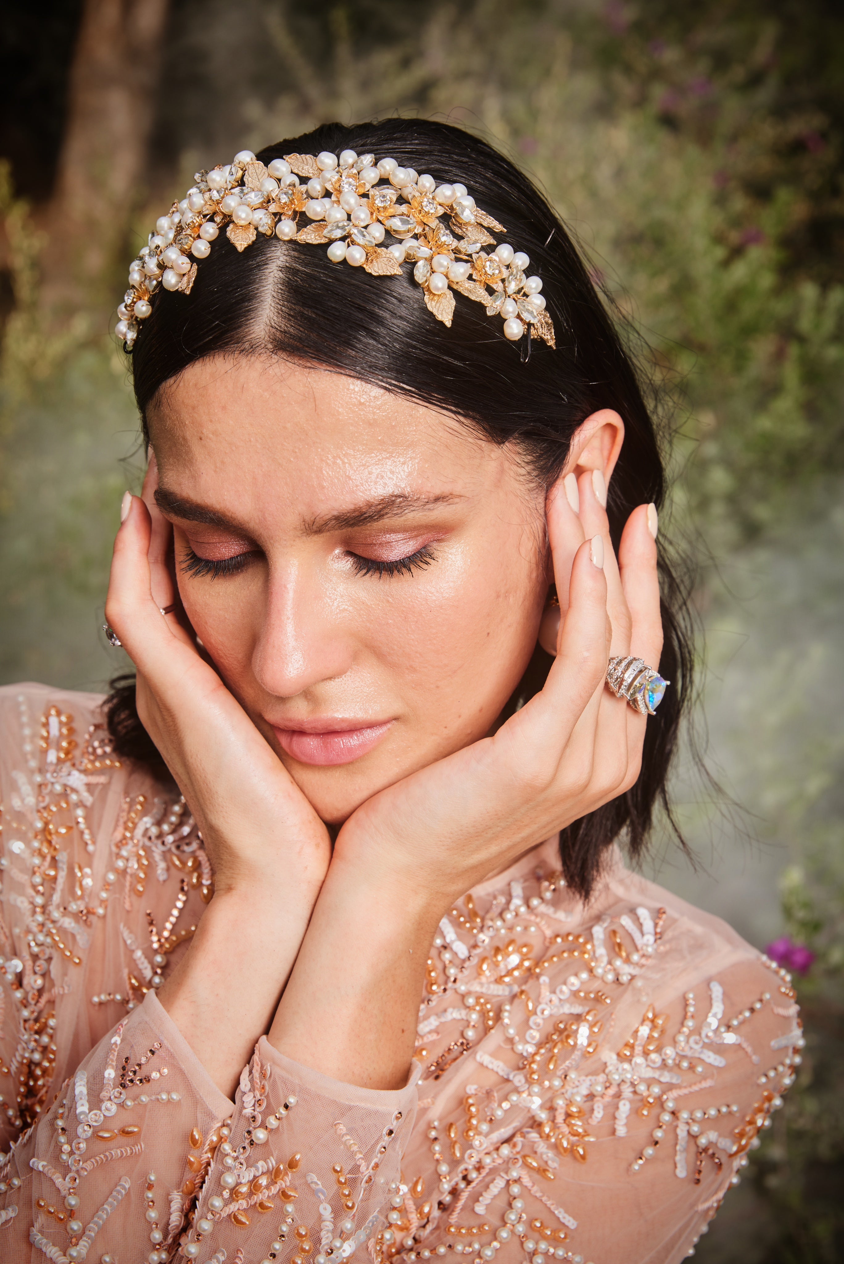 Glisten like morning dew with the Dewdrop Haircomb. Each intricately designed comb features dainty crystal accents that catch the light, creating a mesmerizing sparkle. Effortlessly nestle it into your hair to add a touch of ethereal charm.