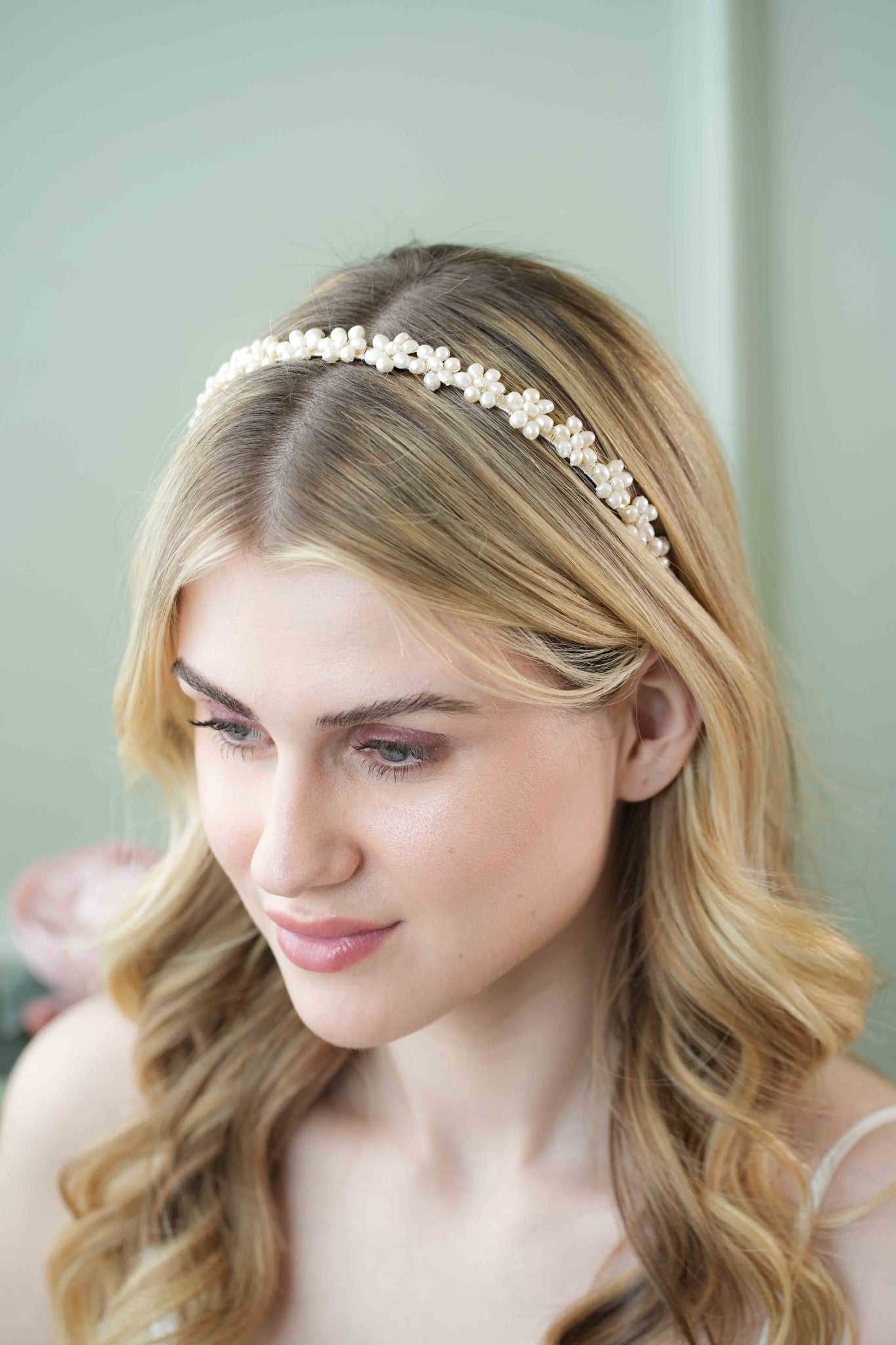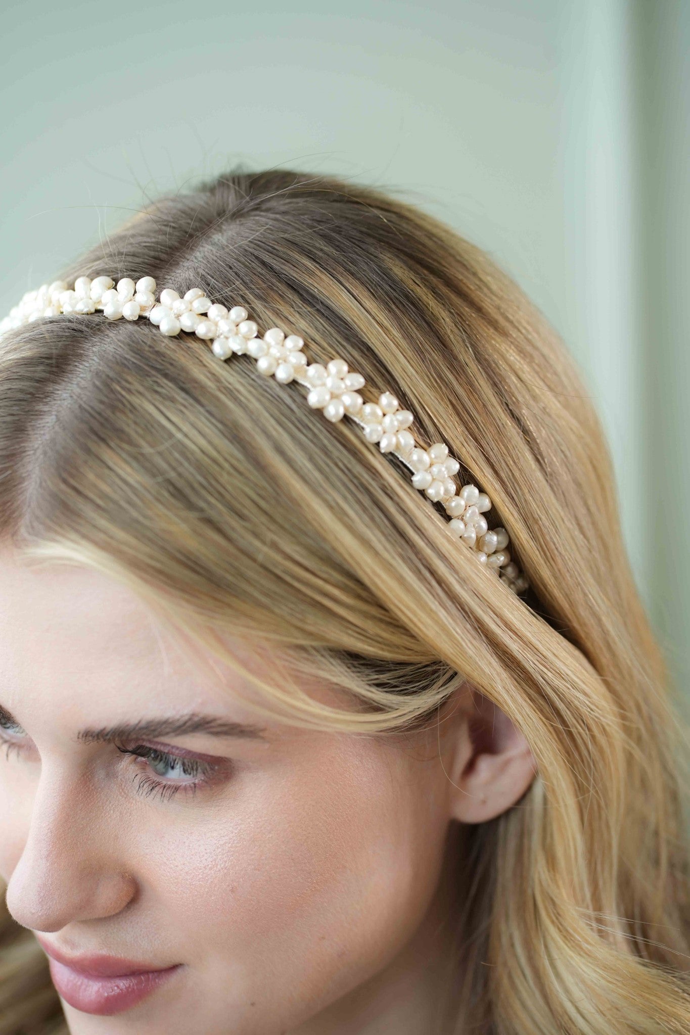 Adorn your hair with the Peri Hair Band, a fusion of delicate pearls. Its intricate design creates a breathtaking display of opulence.