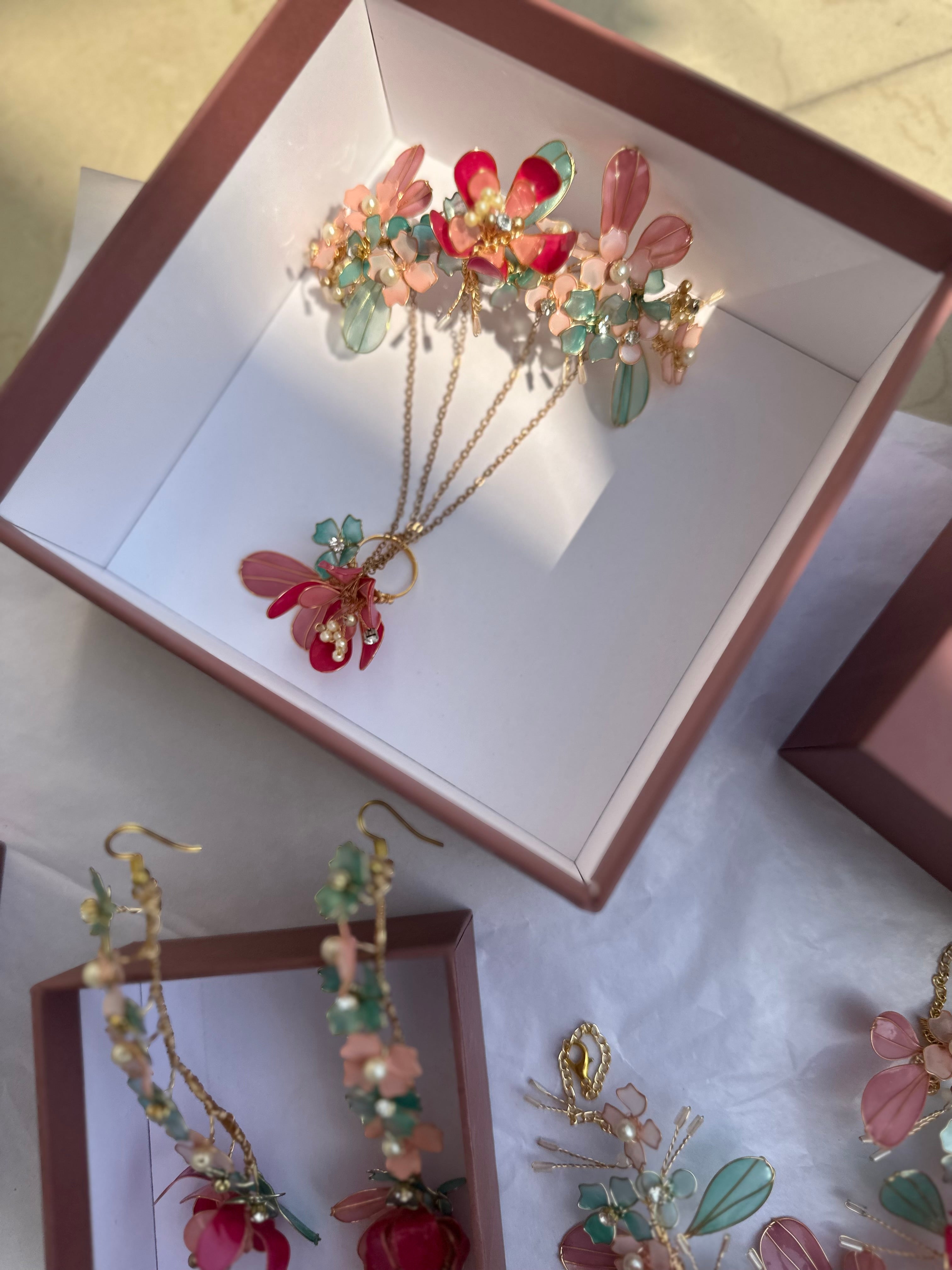 Behold the ethereal beauty of Sakura, our latest collection meticulously crafted over four years. Inspired by the delicate charm of cherry blossoms, Sakura boasts a mesmerising array of impeccable handmade resin jewellery, each piece a unique and everlasting treasure.