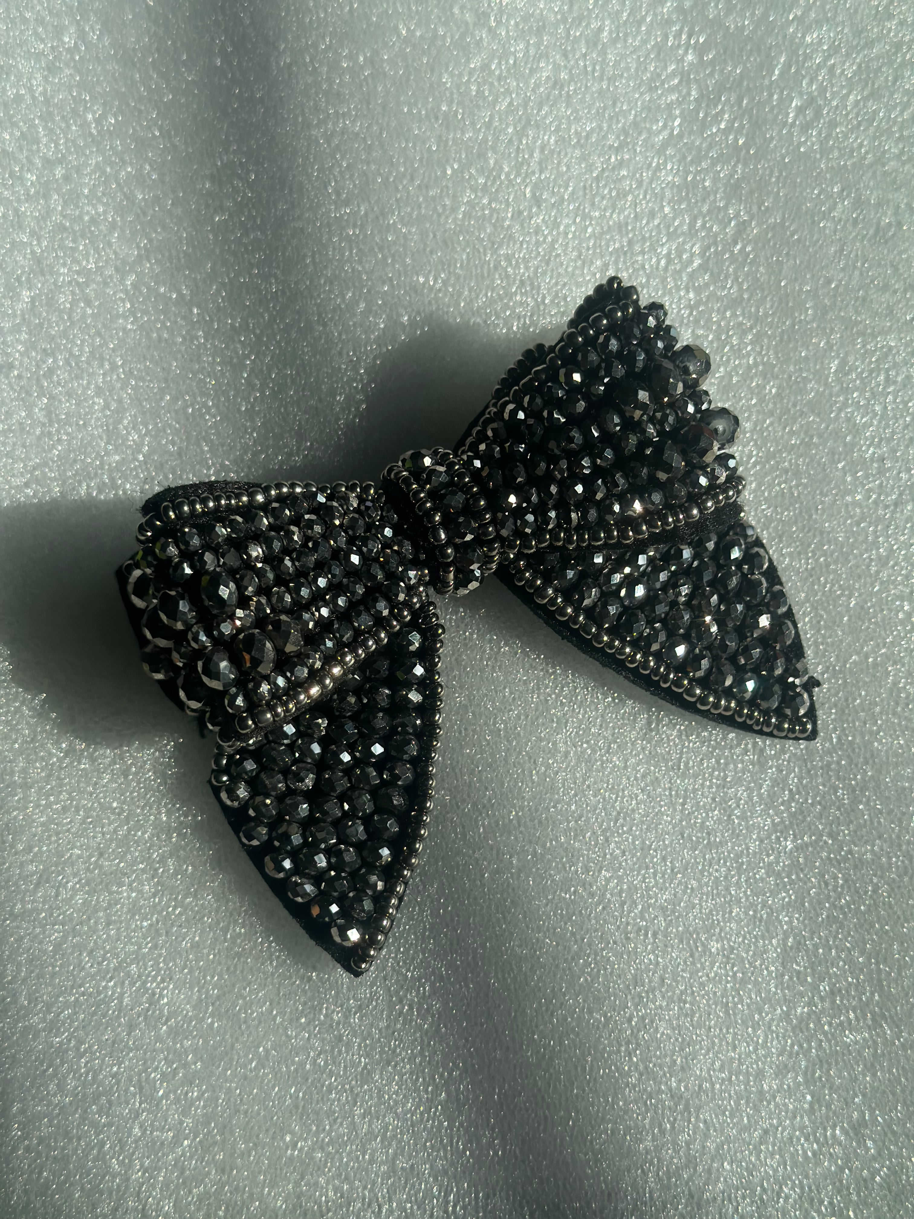 This sleek black bow is the perfect accessory for any party outfit. Its elegant design adds a touch of sophistication to your look, making you stand out in the crowd. Made with high-quality materials, this bow is a must-have for any fashion-forward individual. Elevate your style with this chic party wear accessory.