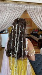 Effortlessly elevate your hair game with our Trisha hair chain set. Made with delicate pearl shells, each chain is 25 inches long for a stunning and versatile look. Add a touch of elegance to any hairstyle with this set of 5.