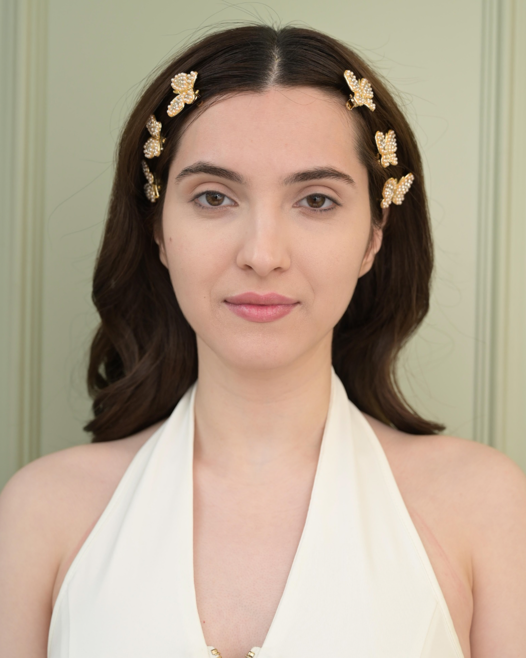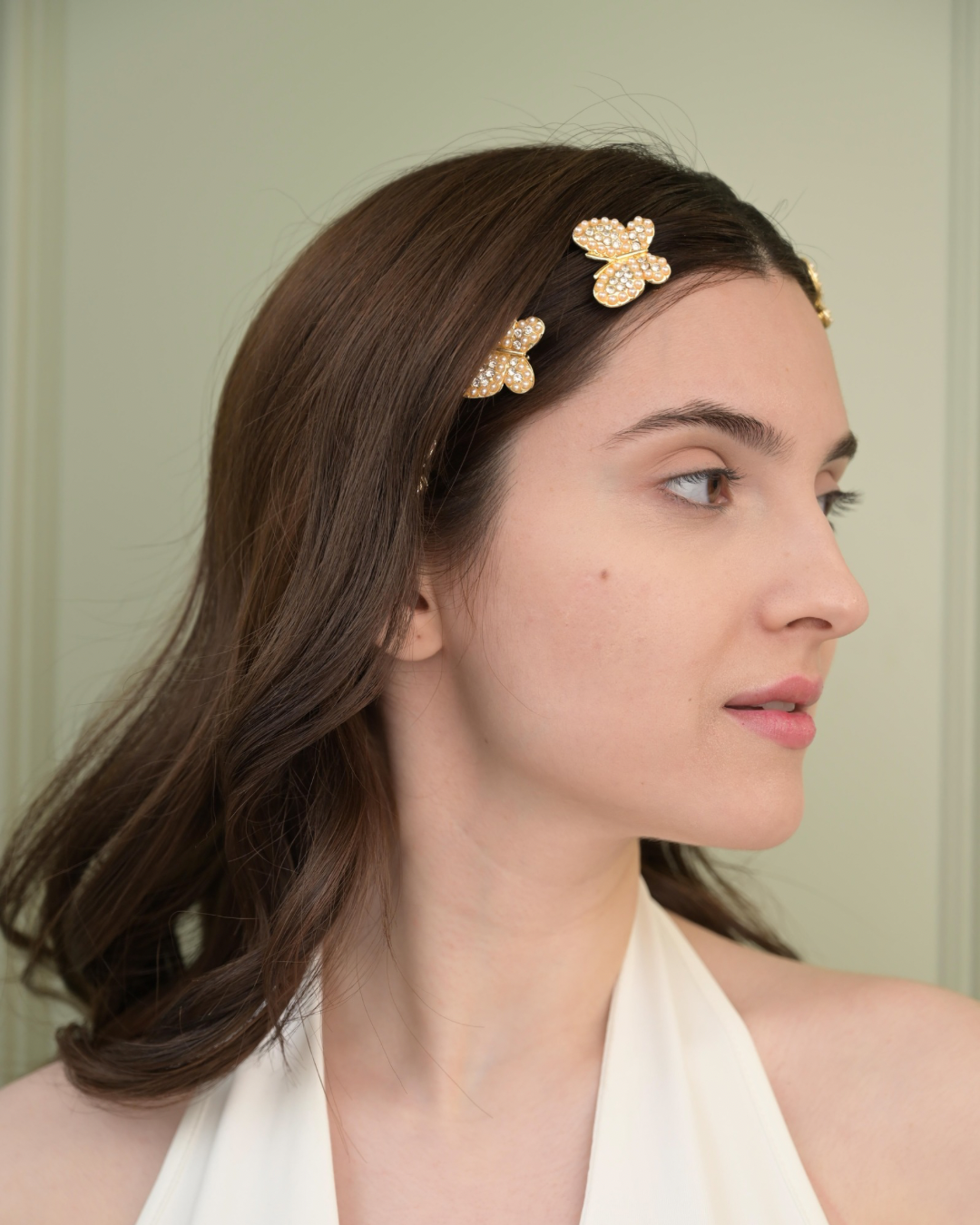 Add a touch of elegance to your hairstyle with the Nyla Butterfly Clip. Featuring a beautiful butterfly design with a pearl center, this clip will elevate any look. Stay stylish and secure all day long.