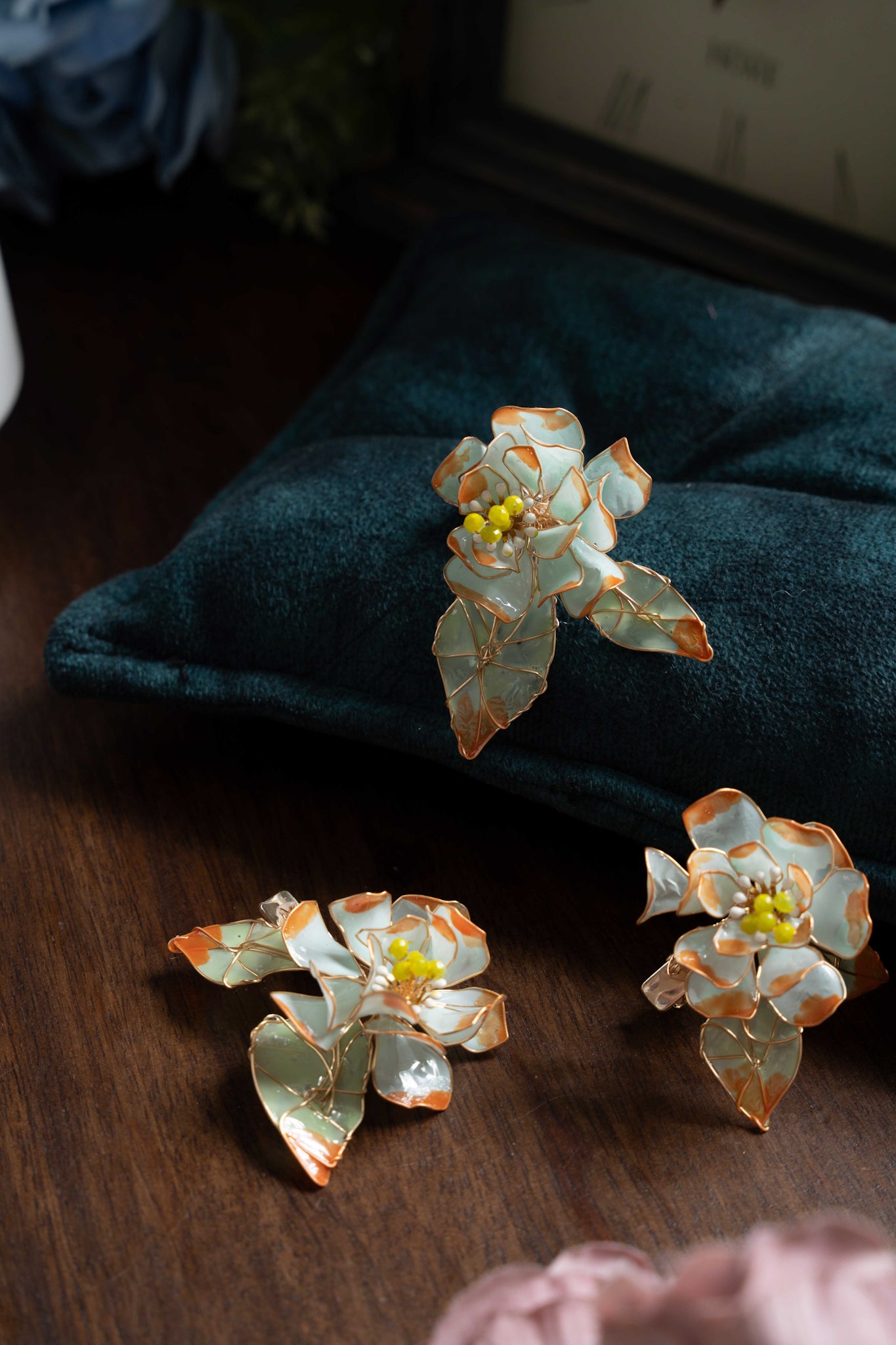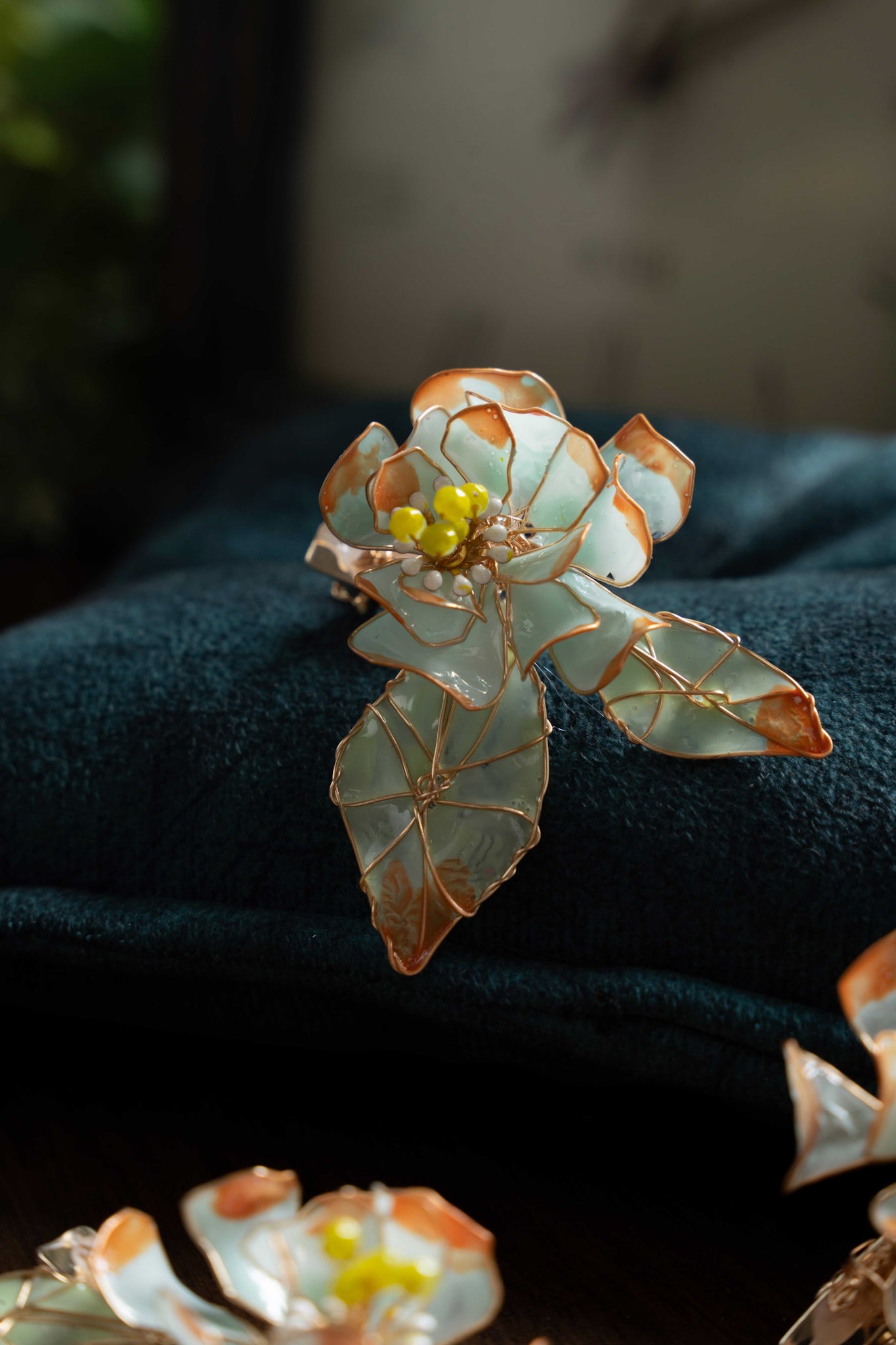 MATERIAL DETAILS - resin , plated wire , pearls and crystals