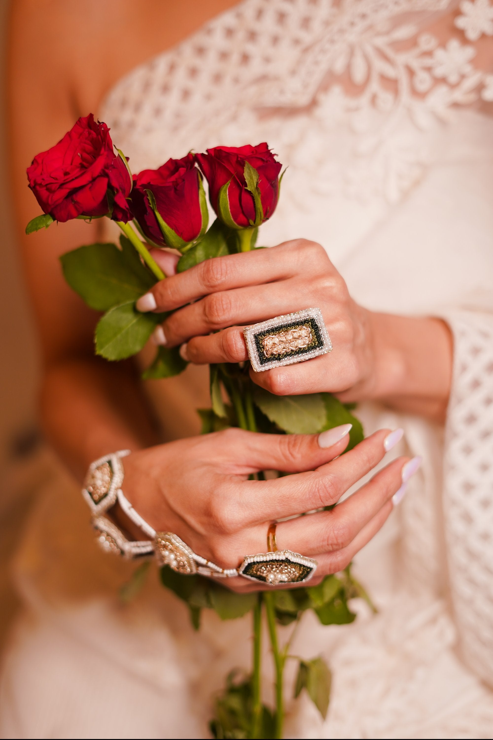 Description - Embrace the delicate allure of our Embroidery Ring, a testament to meticulous craftsmanship and timeless elegance. Each ring is a canvas of intricate stitches, weaving a story of artistry and attention to detail.