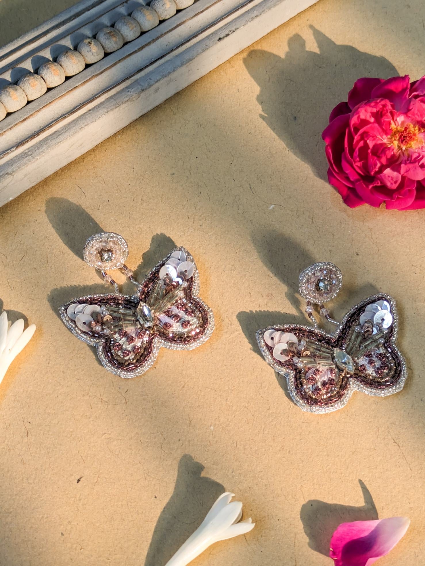 Description -Flutter into style with our Embroidery Butterfly Earrings, where delicate stitches transform into wings of whimsical beauty. Meticulously crafted with vibrant threads and intricate detailing, these earrings capture the essence of nature's grace and elegance.