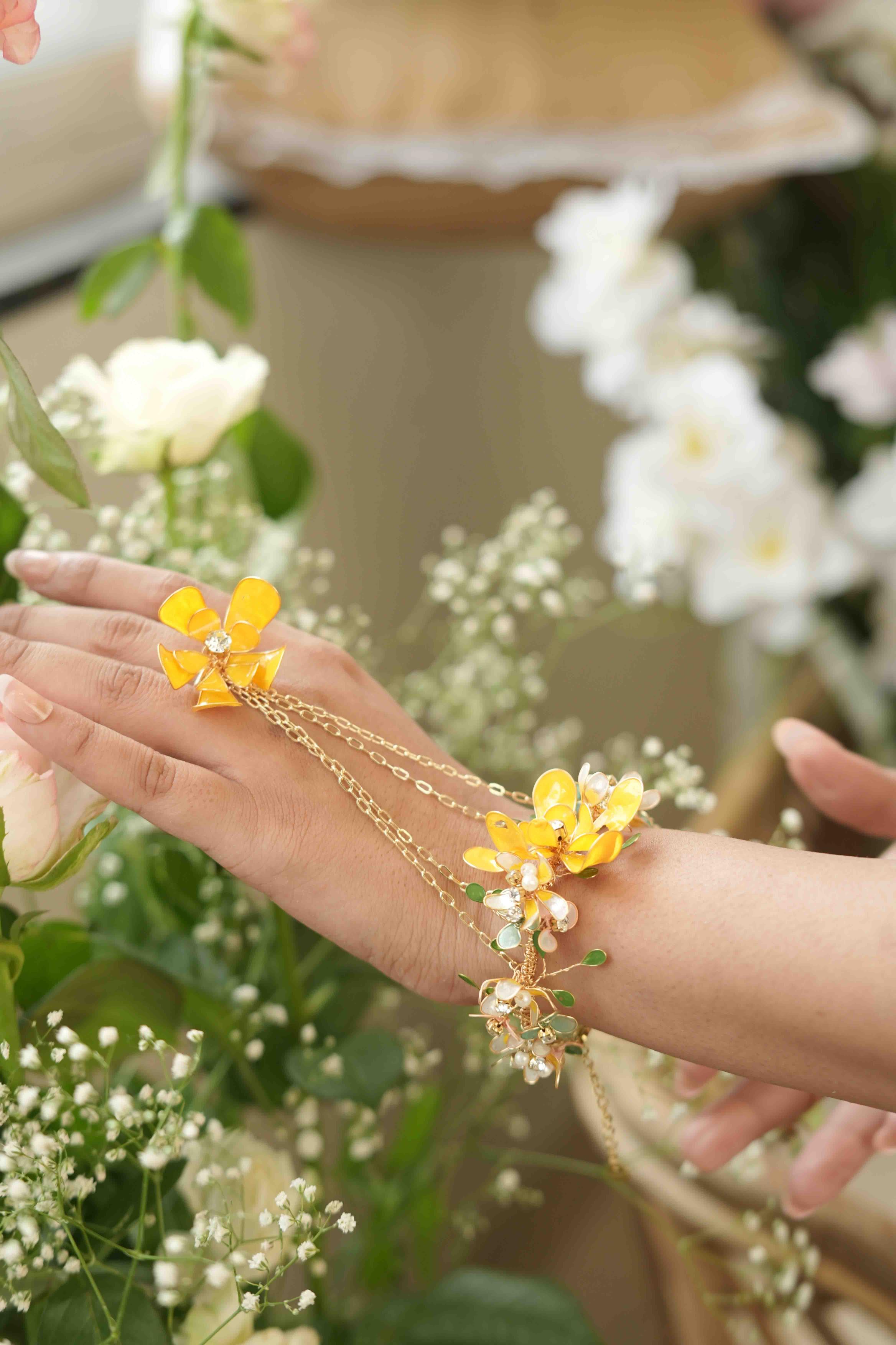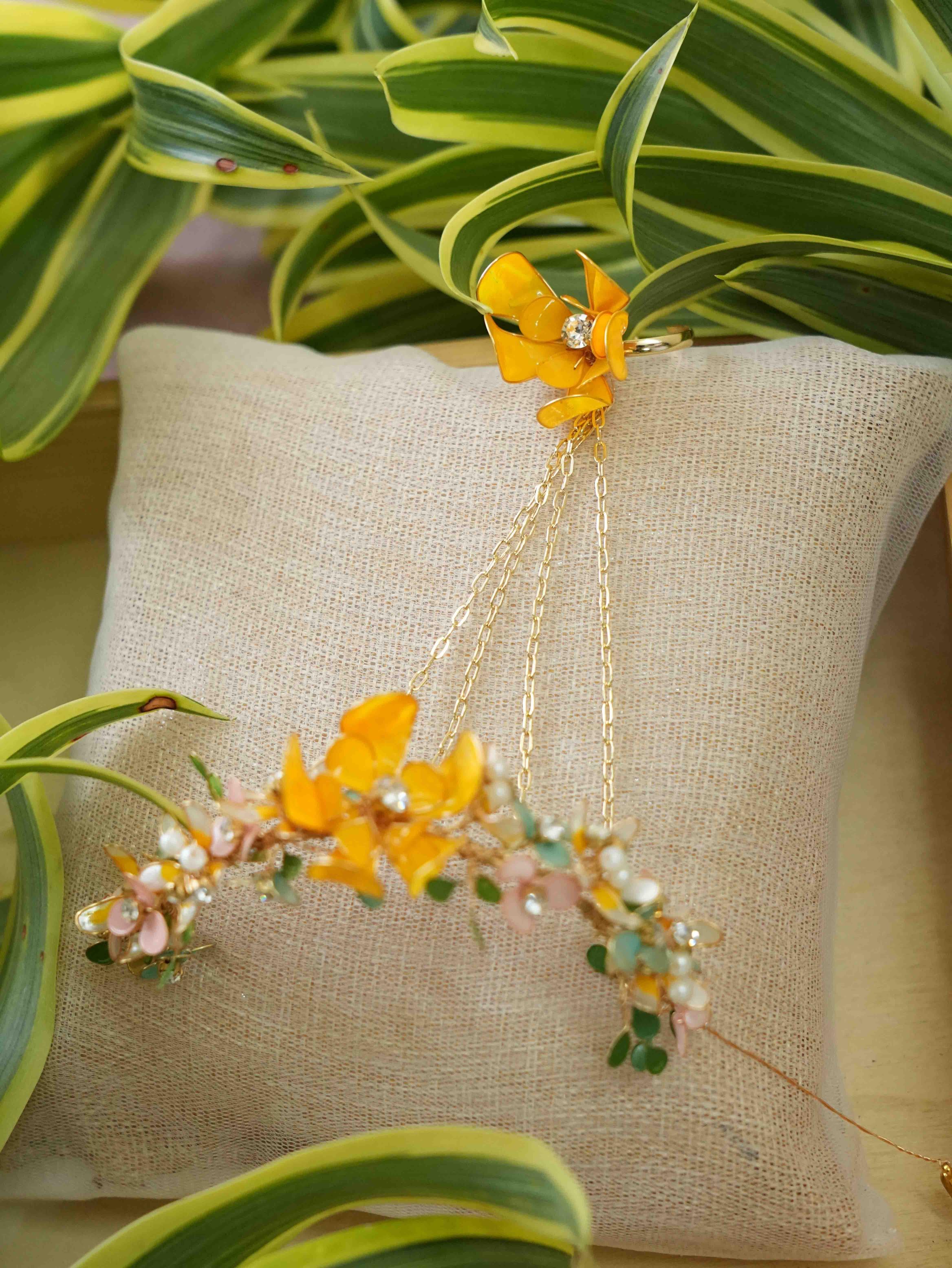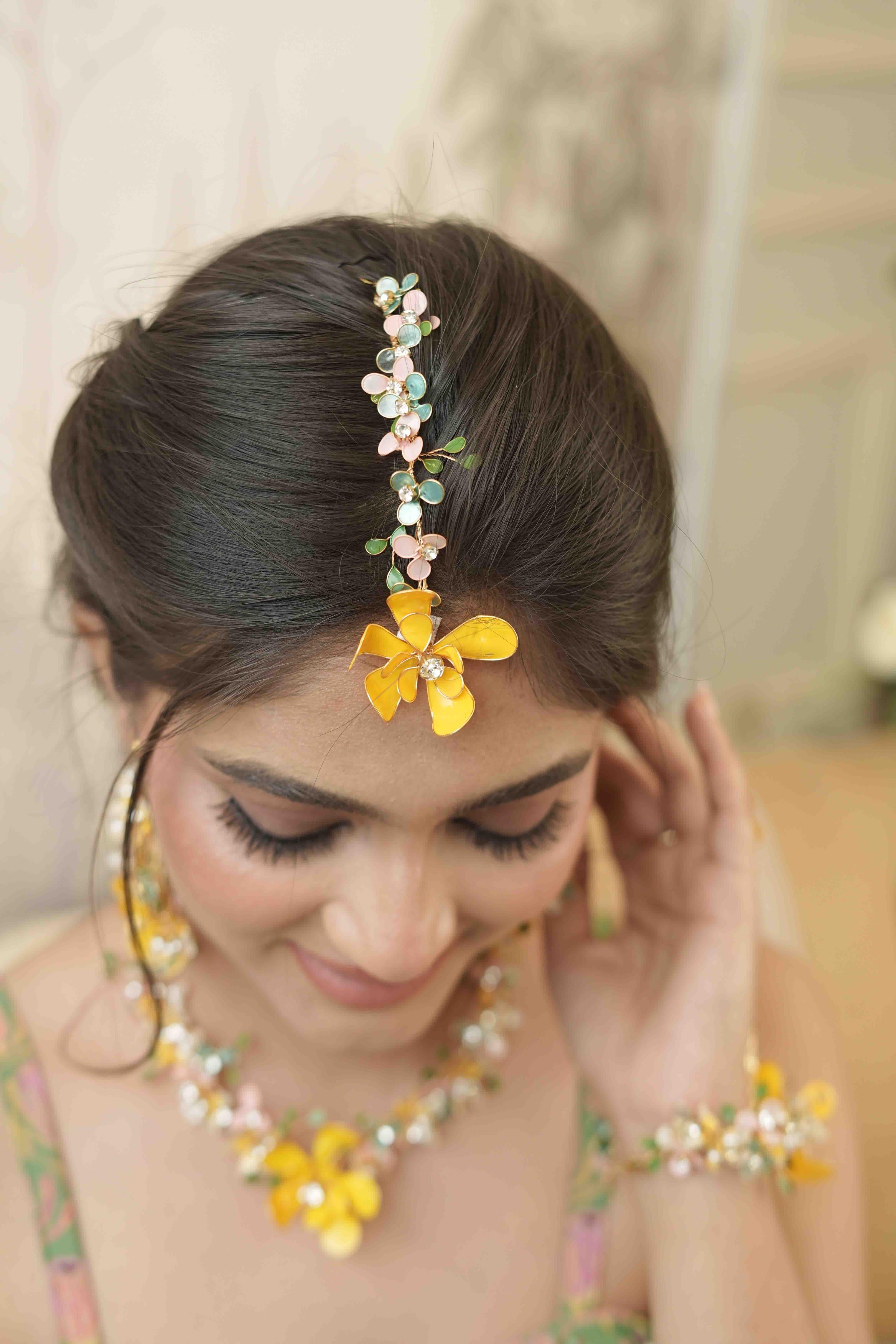 - Set Includes:Haathphool Pair,Necklace,Maangtika, and Earrings