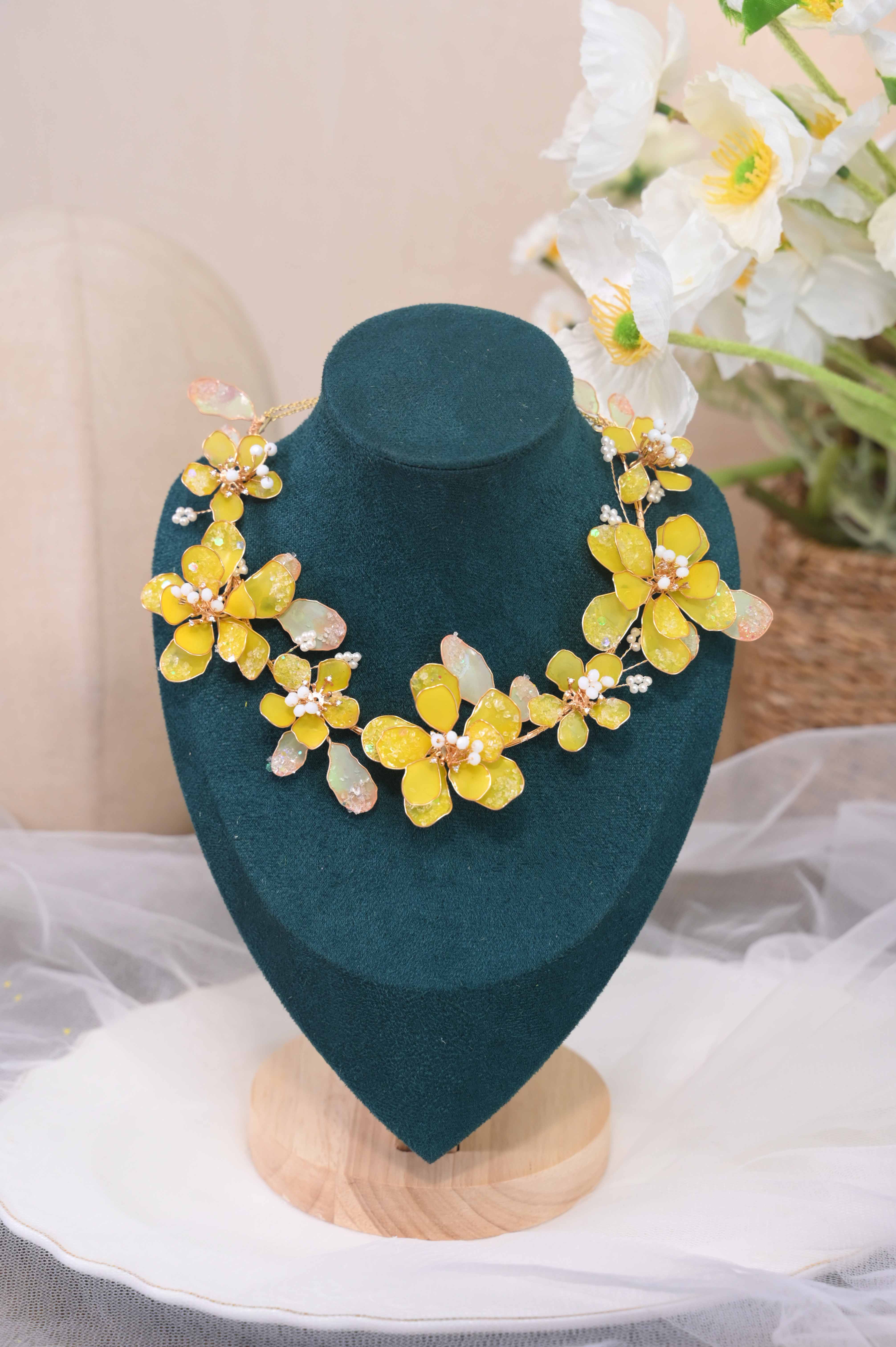 The Adira Necklace lays along the neckline like a serene composition of hand-crafted resin elements. Each piece flows into the next with fluid harmony, creating a luminous finish that feels both modern and timeless. Elegant, poised, and beautifully understated — the Adira Necklace brings a quiet confidence to the bridal look.