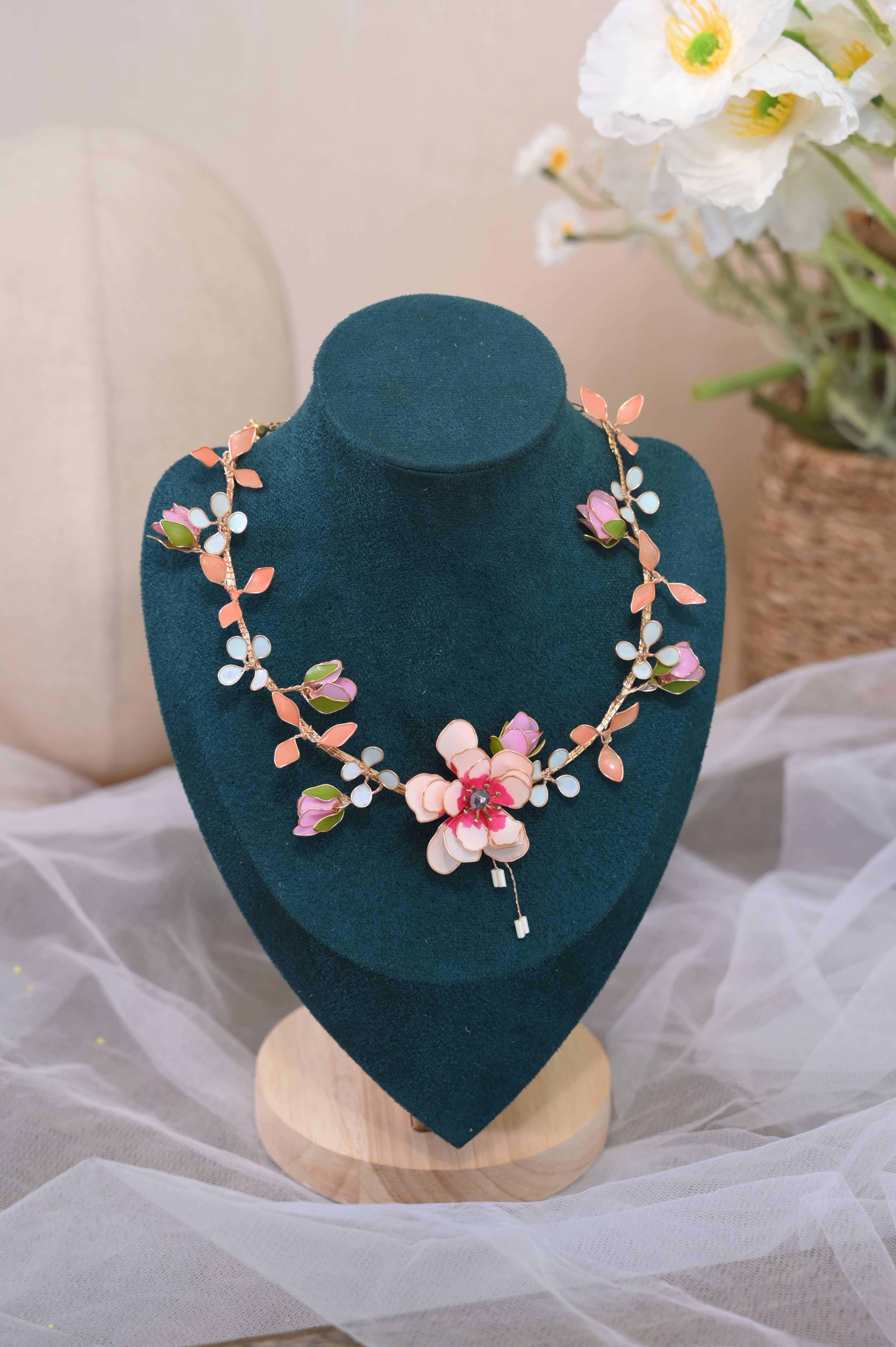 The Elinor Necklace drapes the neckline with a gentle sequence of resin elements shaped into elegant, flowing forms. Each piece is meticulously polished to achieve a serene glow that elevates any bridal ensemble. Balanced, minimal, and luxurious, the Elinor Necklace is a statement of quiet beauty.