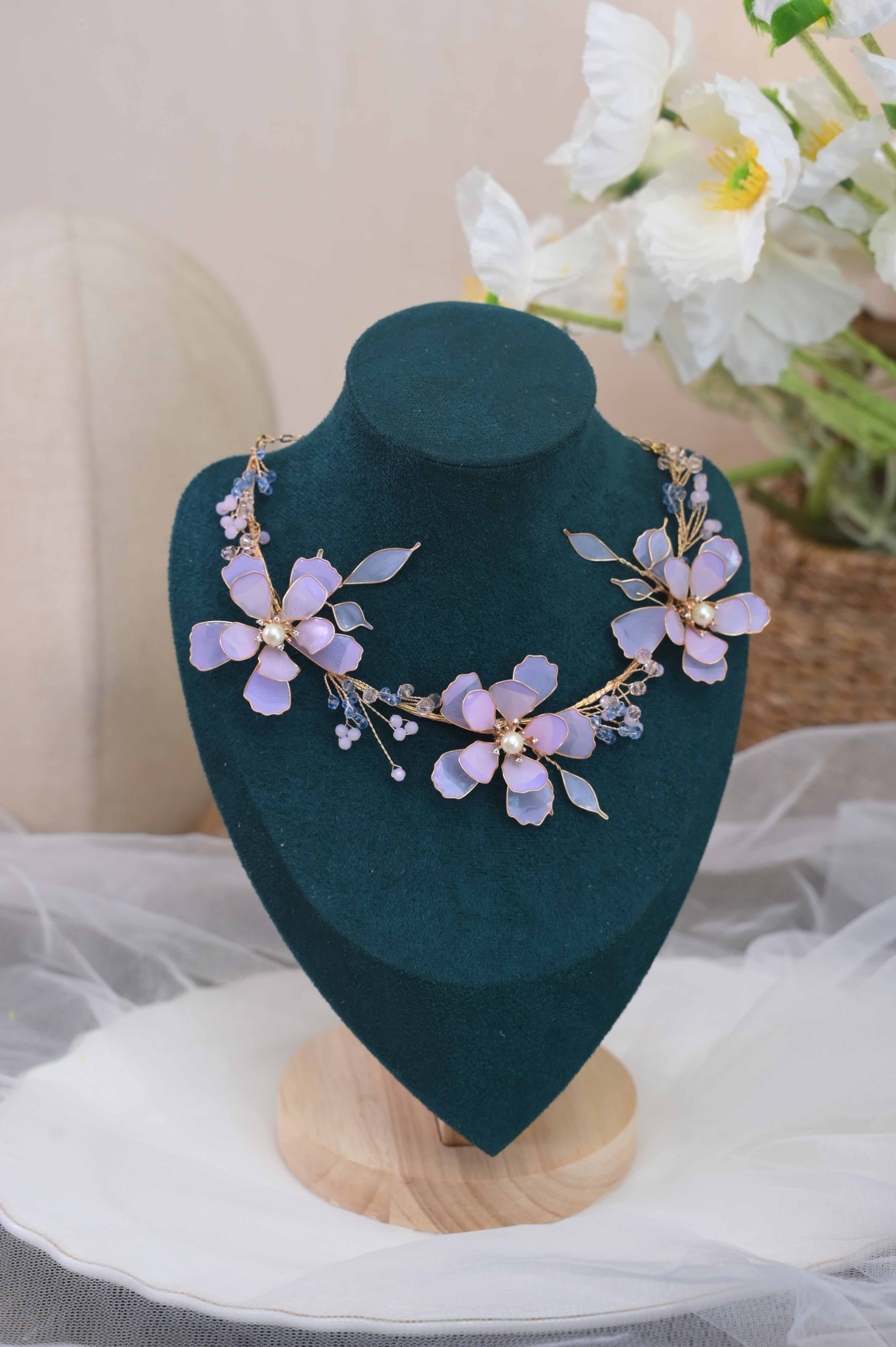 The Odelia Necklace glides along the neckline with a graceful arrangement of handcrafted resin elements. Each piece is shaped for a smooth, radiant finish that captures light beautifully. Modern, delicate, and timeless, it serves as a serene centrepiece for the bridal ensemble — a statement that feels both subtle and unforgettable.