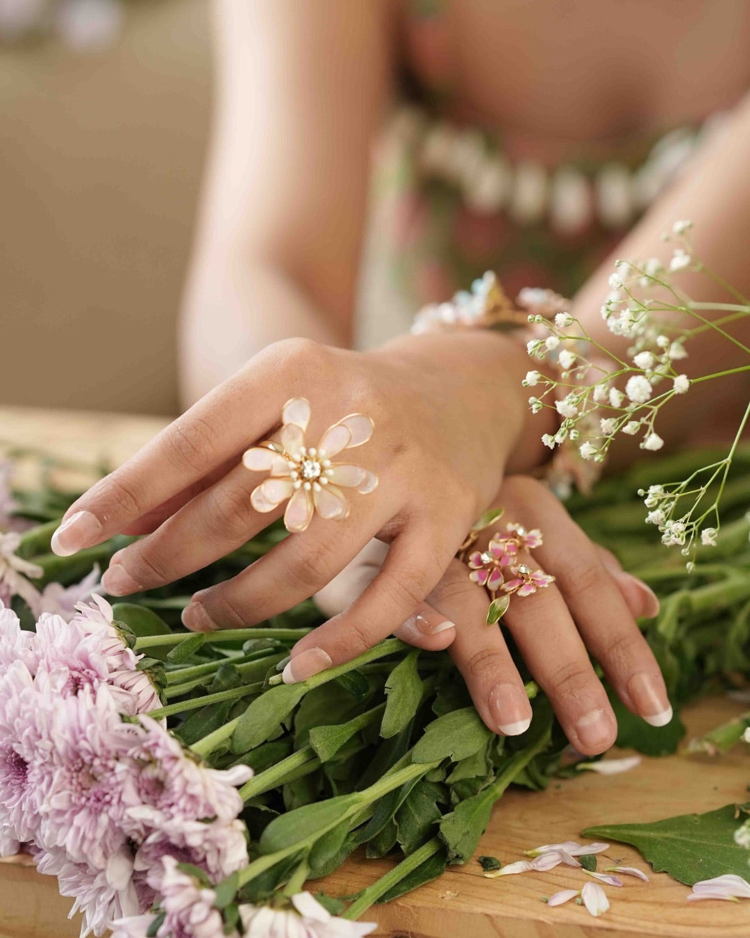Behold the ethereal beauty of Sakura, our latest collection meticulously crafted over four years. Inspired by the delicate charm of cherry blossoms, Sakura boasts a mesmerizing array of impeccable handmade resin jewellery, each piece a unique and everlasting treasure.