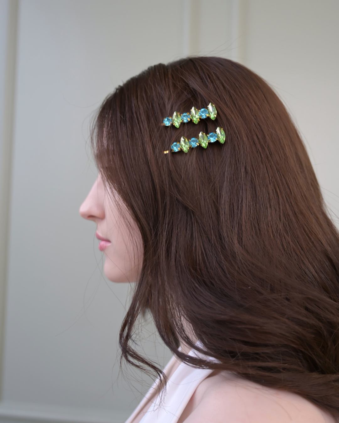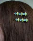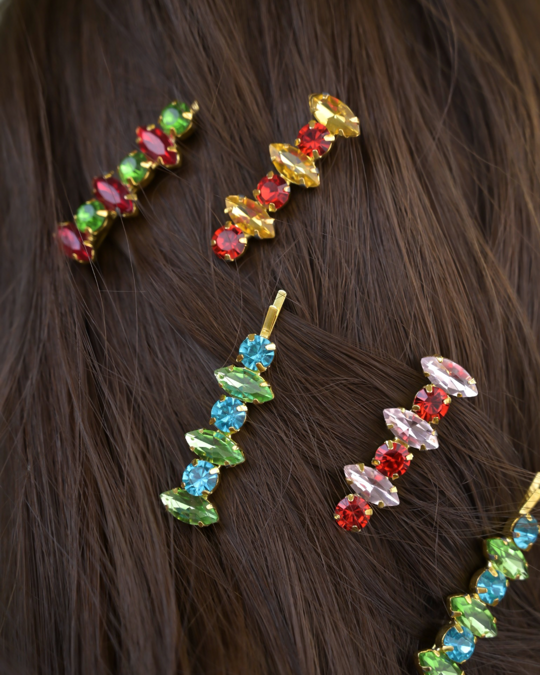 The Emerald Hair Pin is a must-have accessory showcasing a beautiful ruby gem. Perfect for party wear, this hair pin adds a touch of glamour to any hairstyle. Elevate your look with this elegant piece.