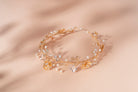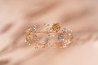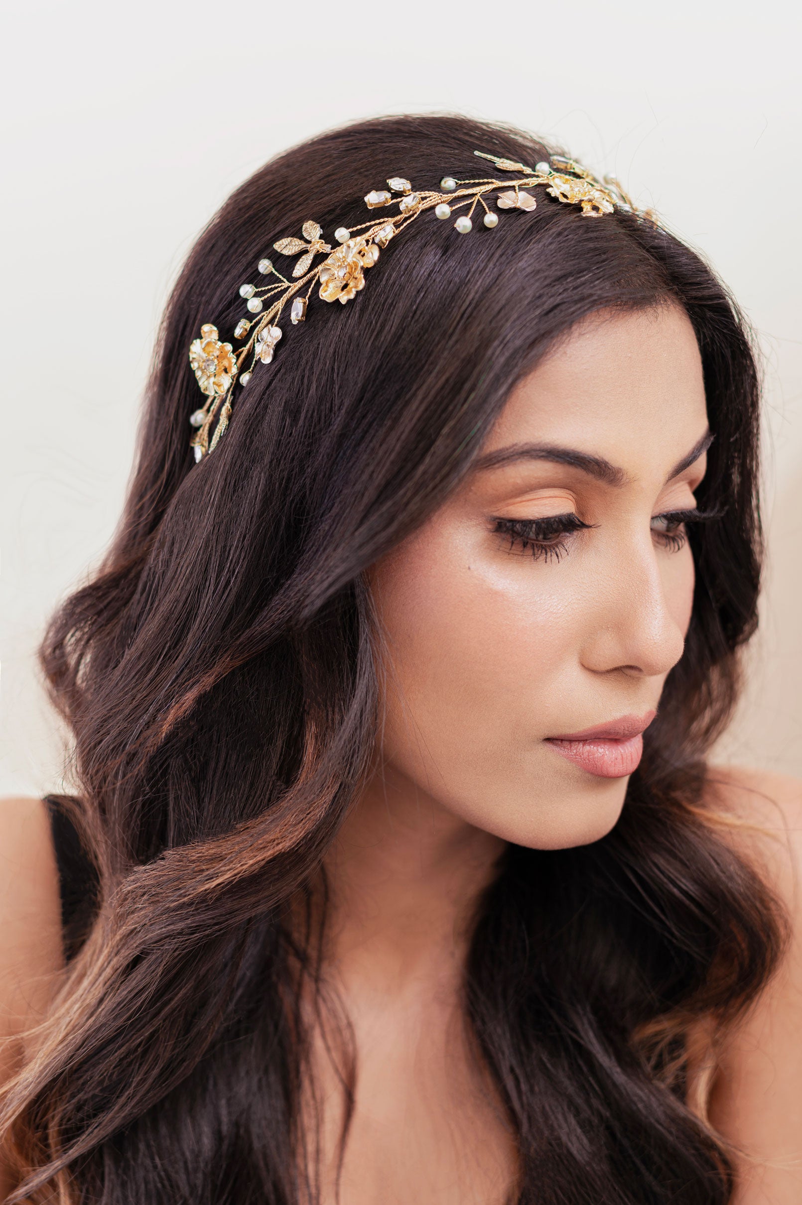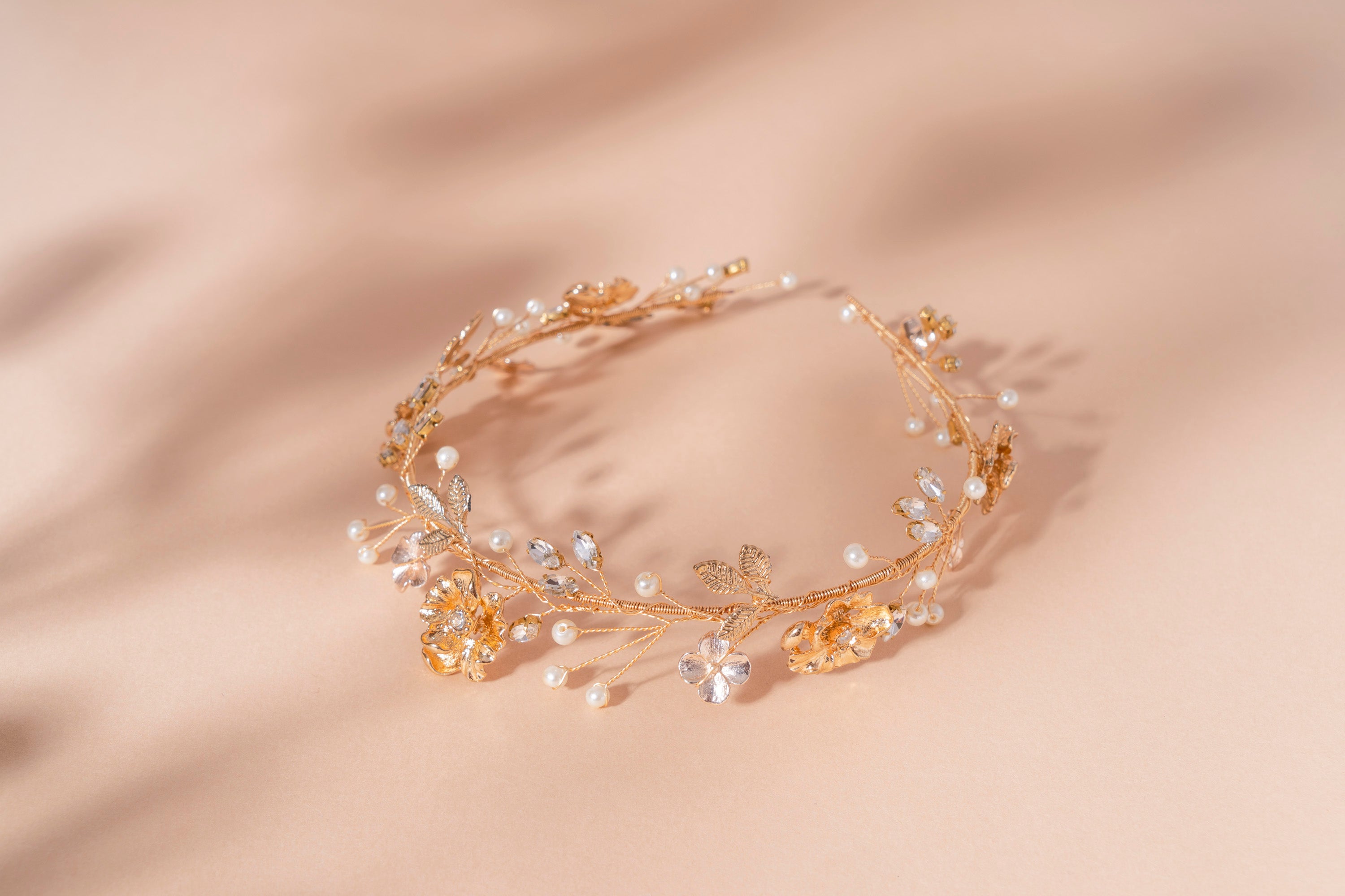 Glass stones, pearls, plated metal flowers, wire with metal base