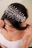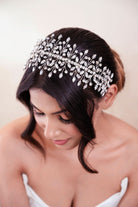 A harmonious blend of elegance and versatility, this headband effortlessly enhances your style with its shimmering glass stones delicately woven into a sleek wire design.