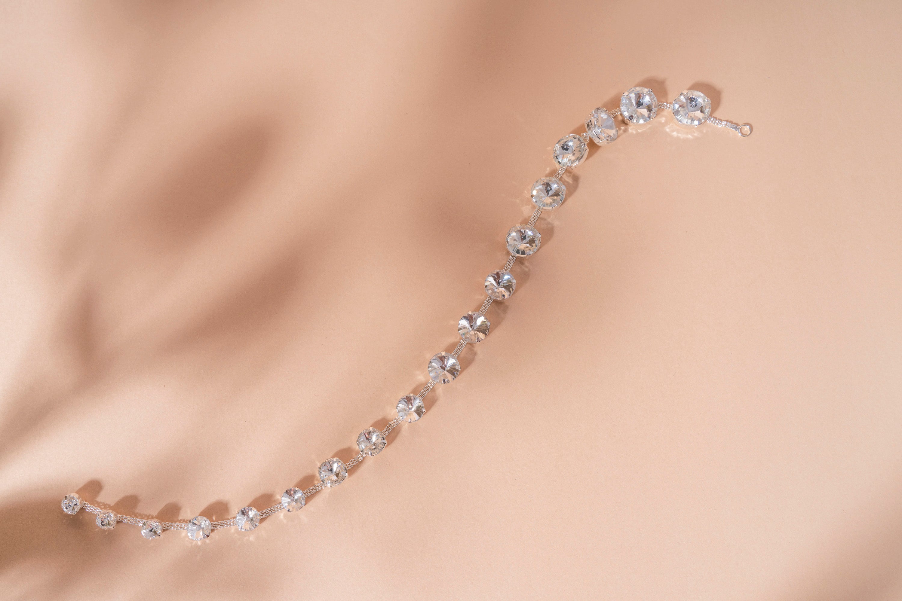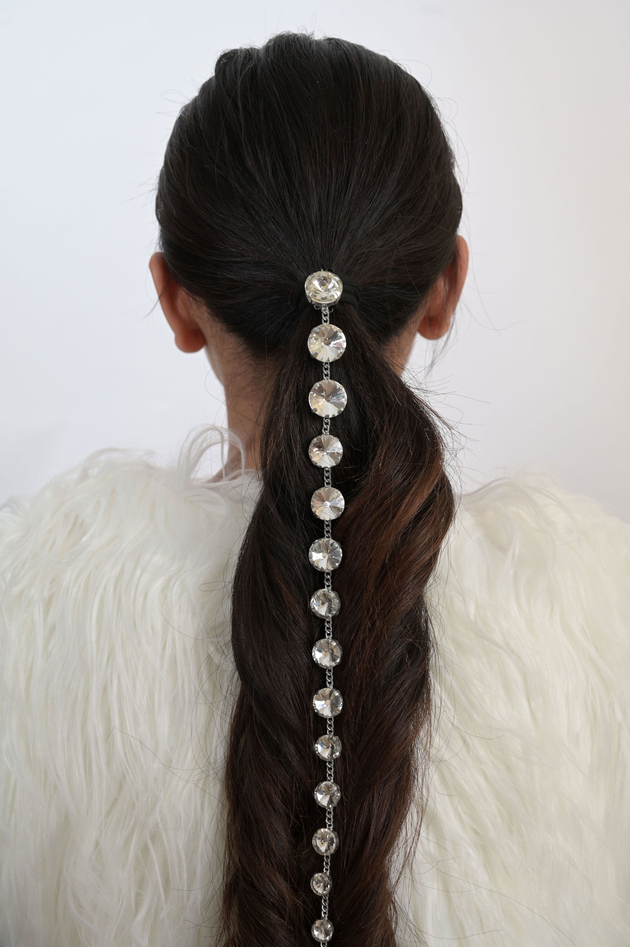 Introducing our gorgeous hair chain, made from high-quality glass stones and metal. Perfect for a minimal bridal look or special events like bridal and baby showers. Add a touch of elegance and sophistication to any hairstyle with this beautiful accessory.
