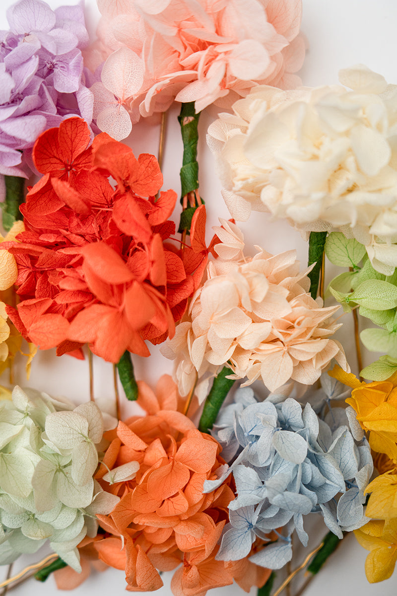 Handcrafted with naturally dried hydrangea flowers, bringing a touch of timeless beauty to your hair. These charming floral accessories effortlessly enhance any hairstyle, making you feel like a blossoming garden.