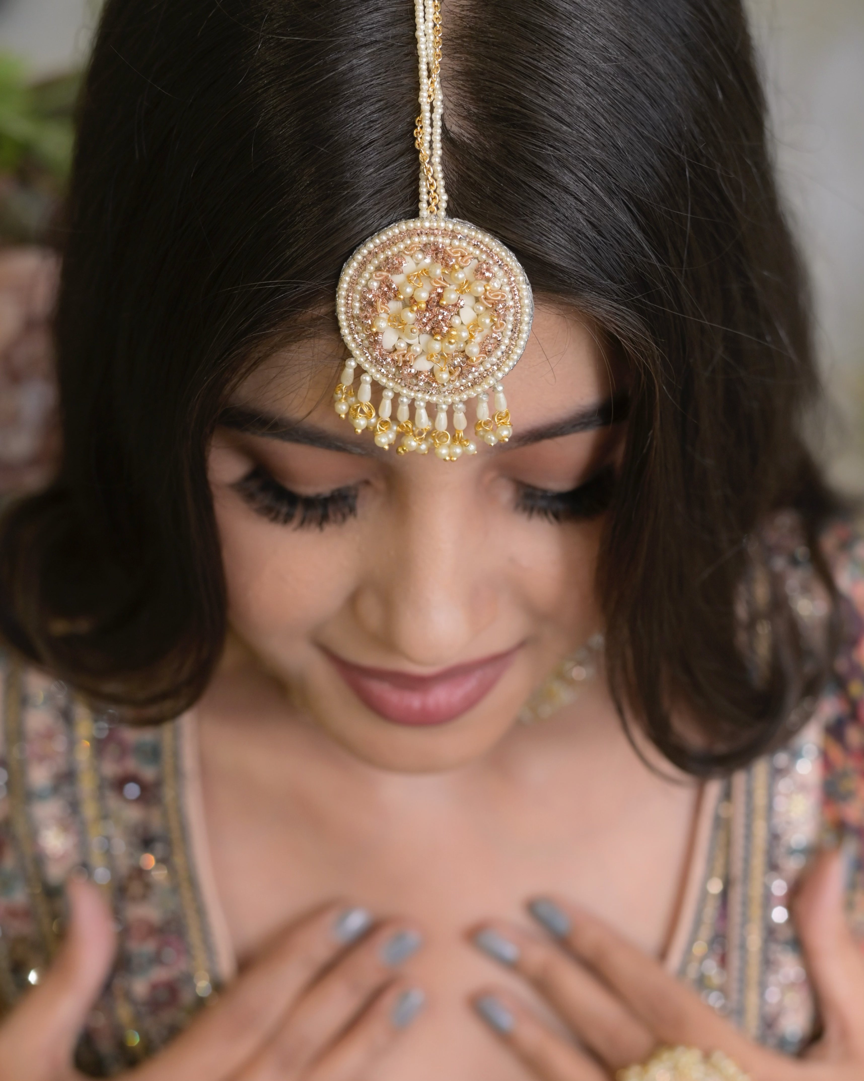 Description - Meticulously crafted with precision, this forehead ornament is a visual poetry of vibrant threads, delicate beads, and intricate embroidery, offering a regal touch to your ensemble.