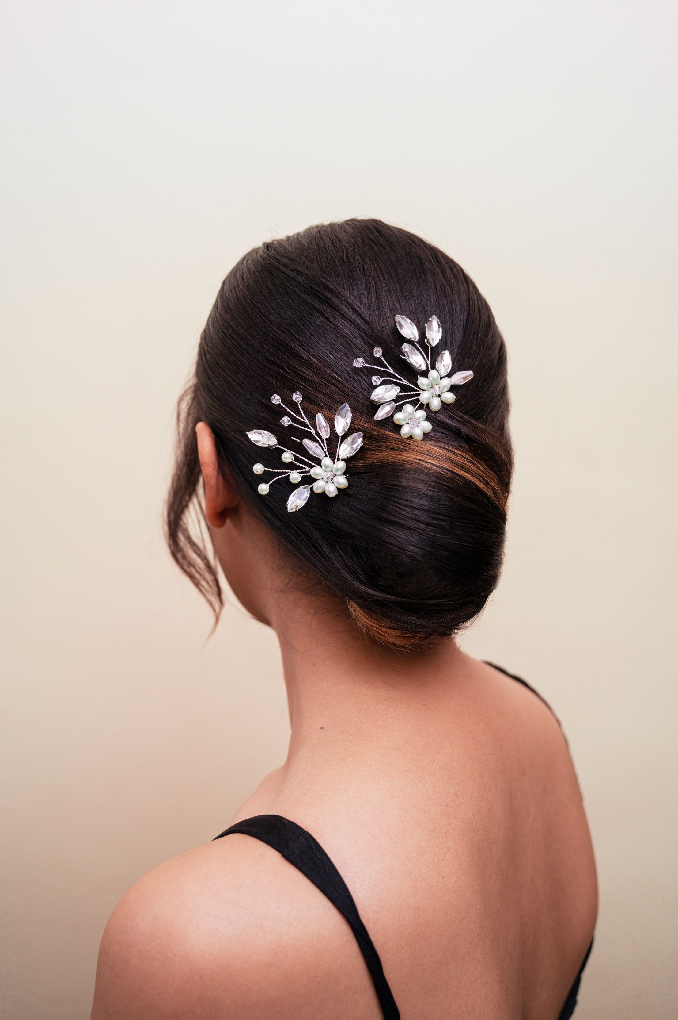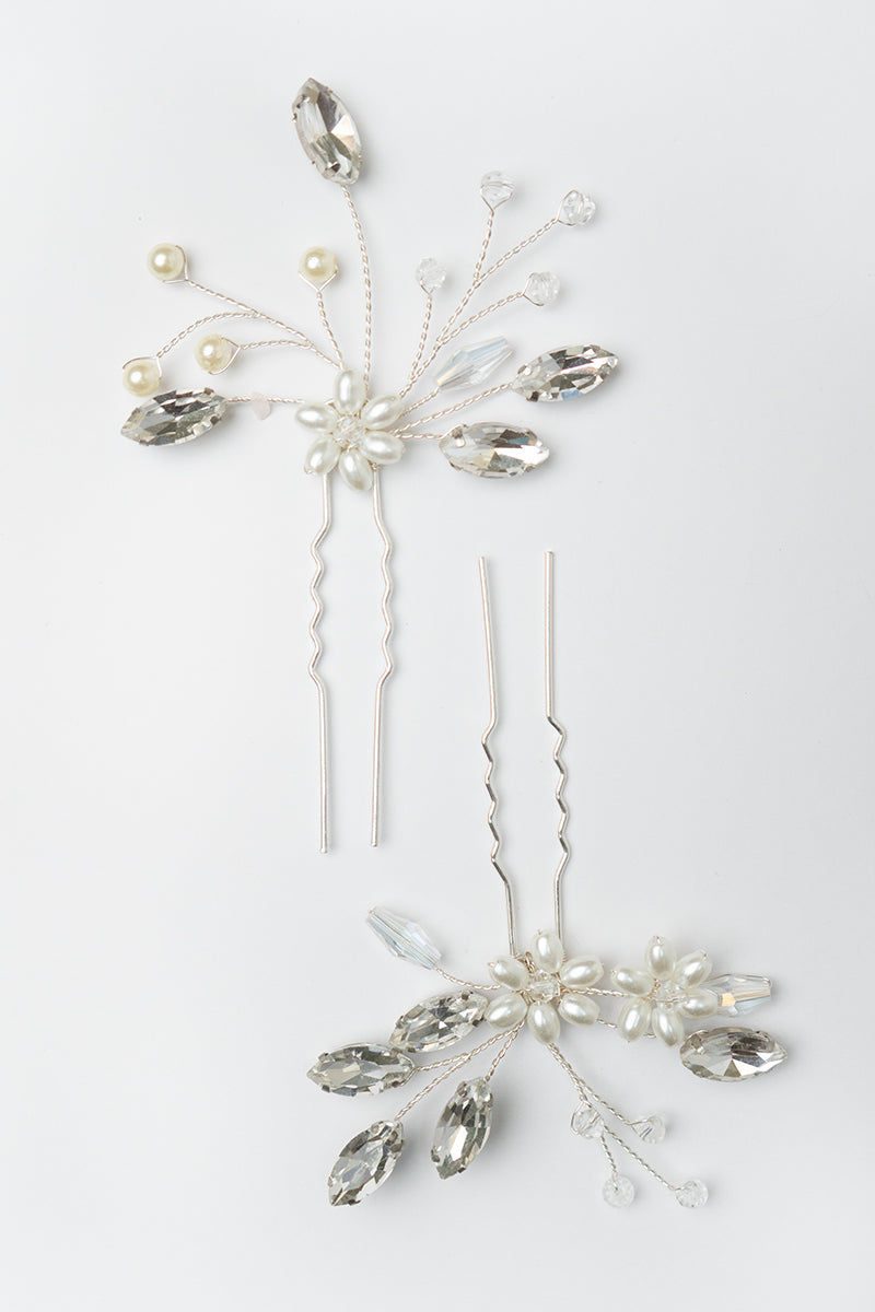 Handcrafted with lustrous pearls, shimmering glass stones, and delicately woven wire, this hair pin is a captivating accessory that adds a touch of elegance and sparkle to your hairstyle.