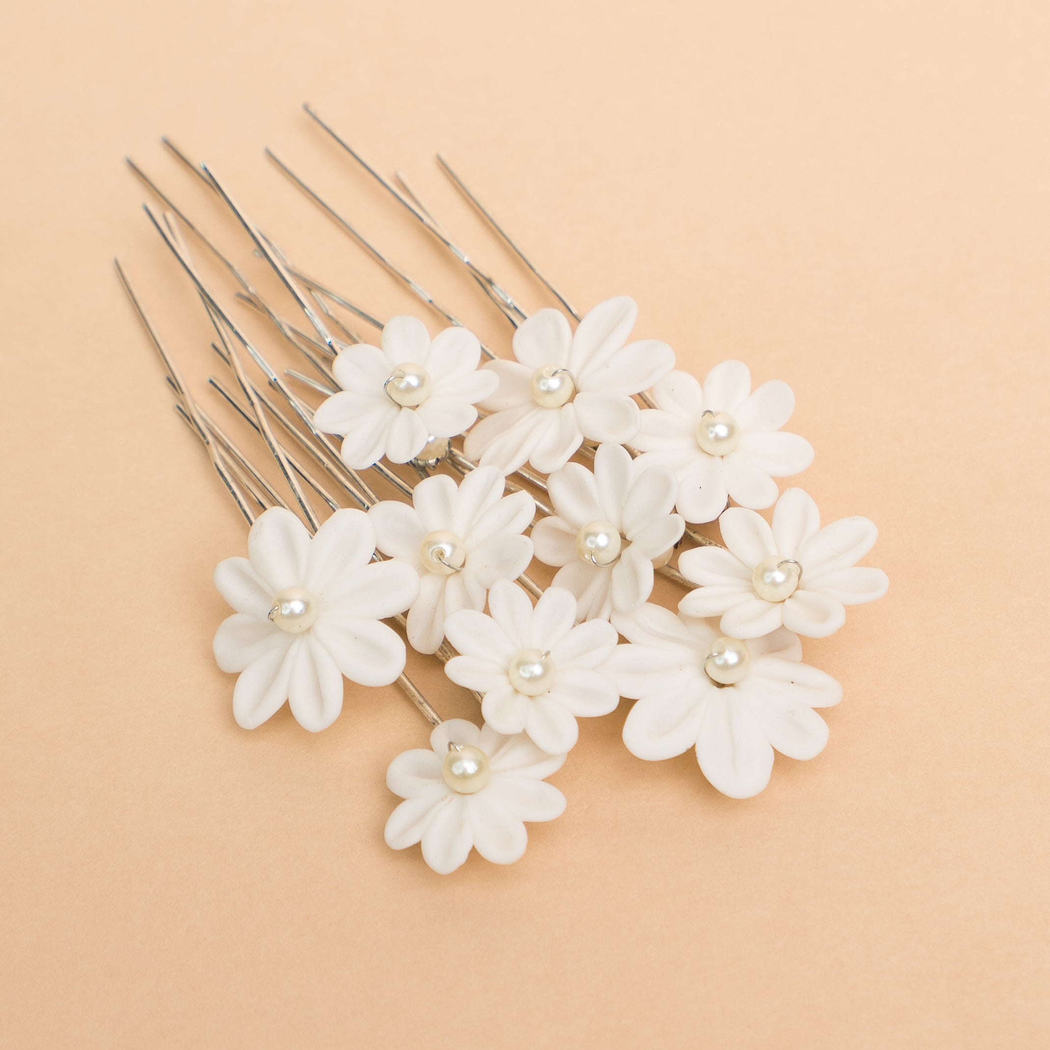Handcrafted with intricate clay flowers and adorned with delicate pearls, this hair pin is a whimsical and elegant accessory that adds a touch of natural beauty to your hairstyle.