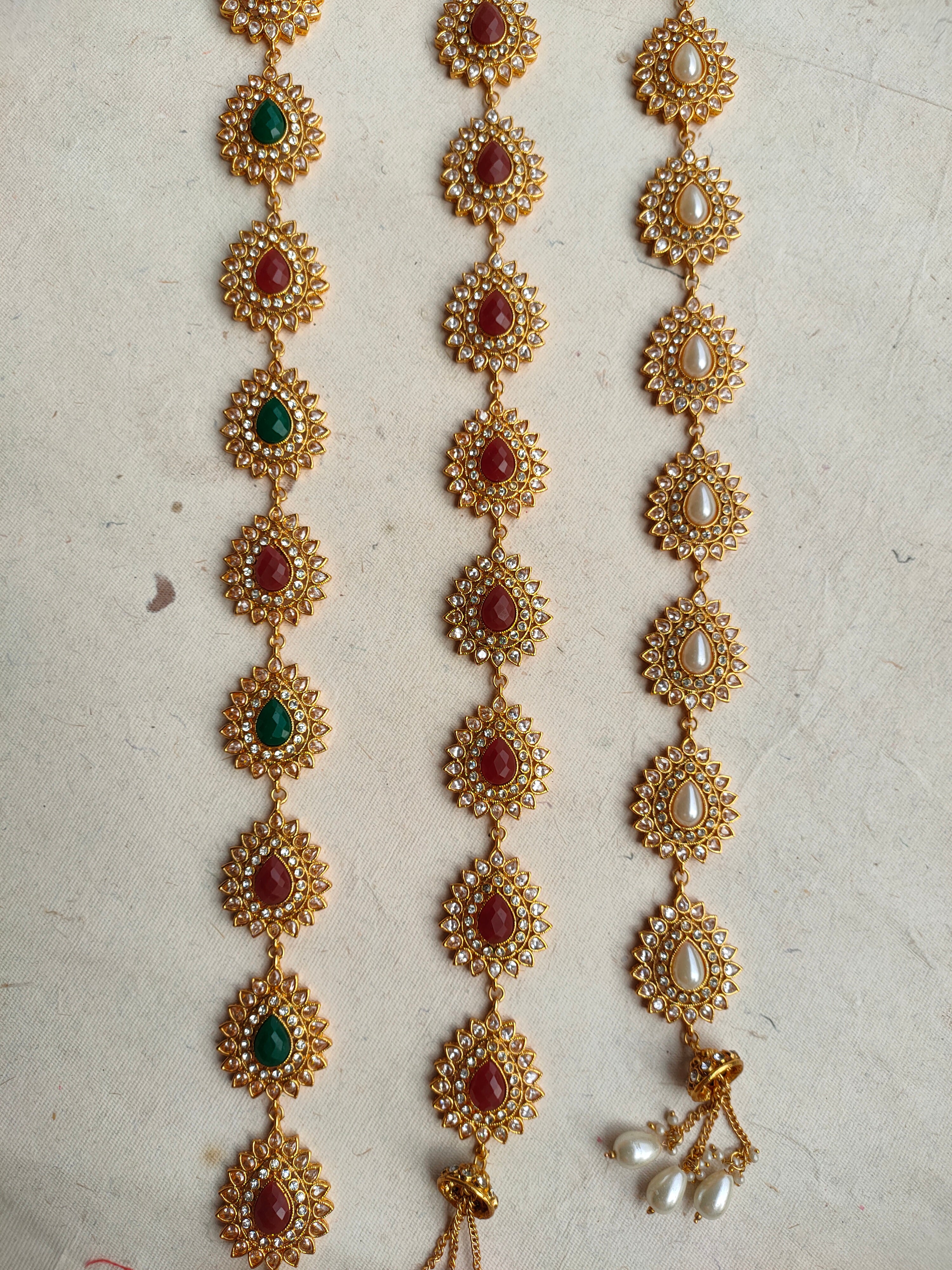 Elevate your festive braid look with our mesmerizing braid choti, crafted with gold-plated metal and adorned with dazzling zircon stones.