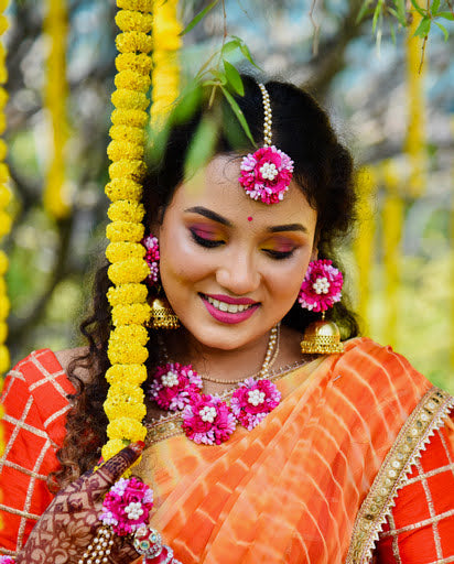 Listen to a breathtaking symphony of elegance and femininity with our exquisite wedding jewellery. Handcrafted with delicate flowers and adorned with shimmering pearl embellishments, each piece radiates a timeless charm, embracing the essence of love and beauty for your special day.