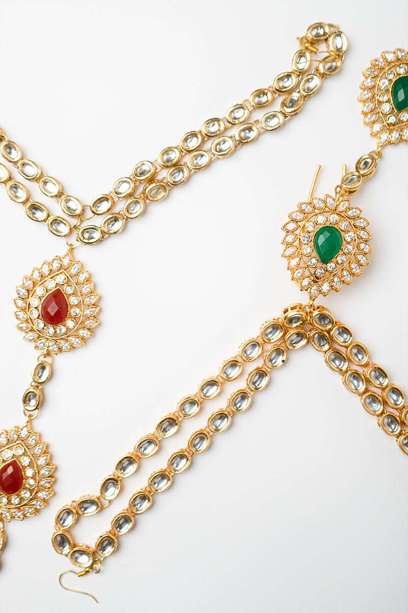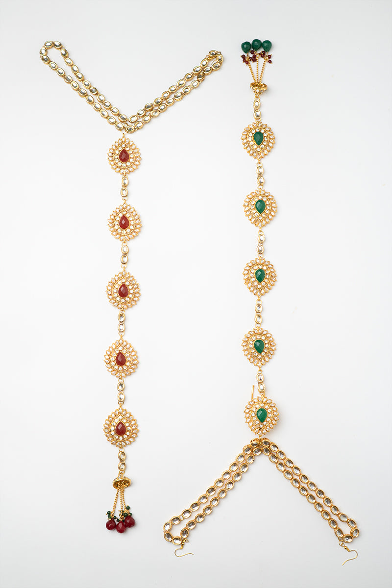 Let the Queen in you reflect with enchanting braid choti, meticulously designed with gold-plated metal and embellished with radiant zircon stones.