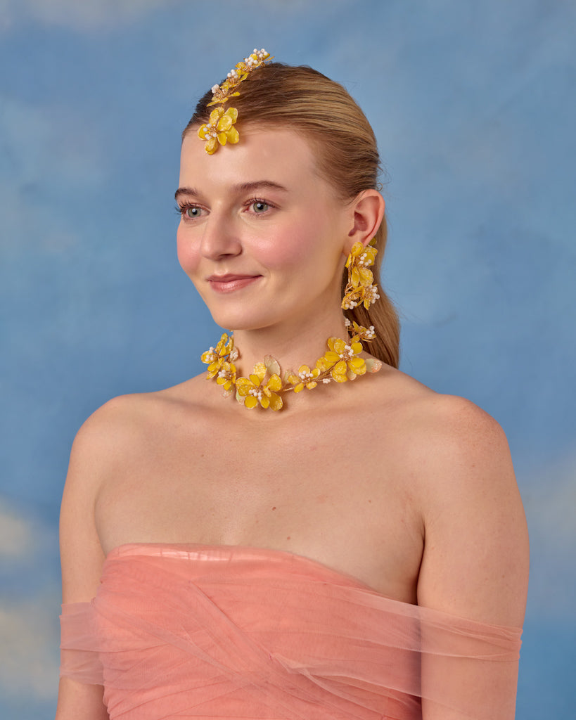 The Adira Bridal Set unites all pieces — earrings, necklace, maangtika, and hathphool — into a cohesive expression of modern bridal elegance. Each resin component reflects the collection’s signature balance of softness and sophistication, creating a look that is polished, airy, and effortlessly harmonious. For brides who seek timeless luxury with delicate detailing, the Adira Set completes the ensemble with grace.