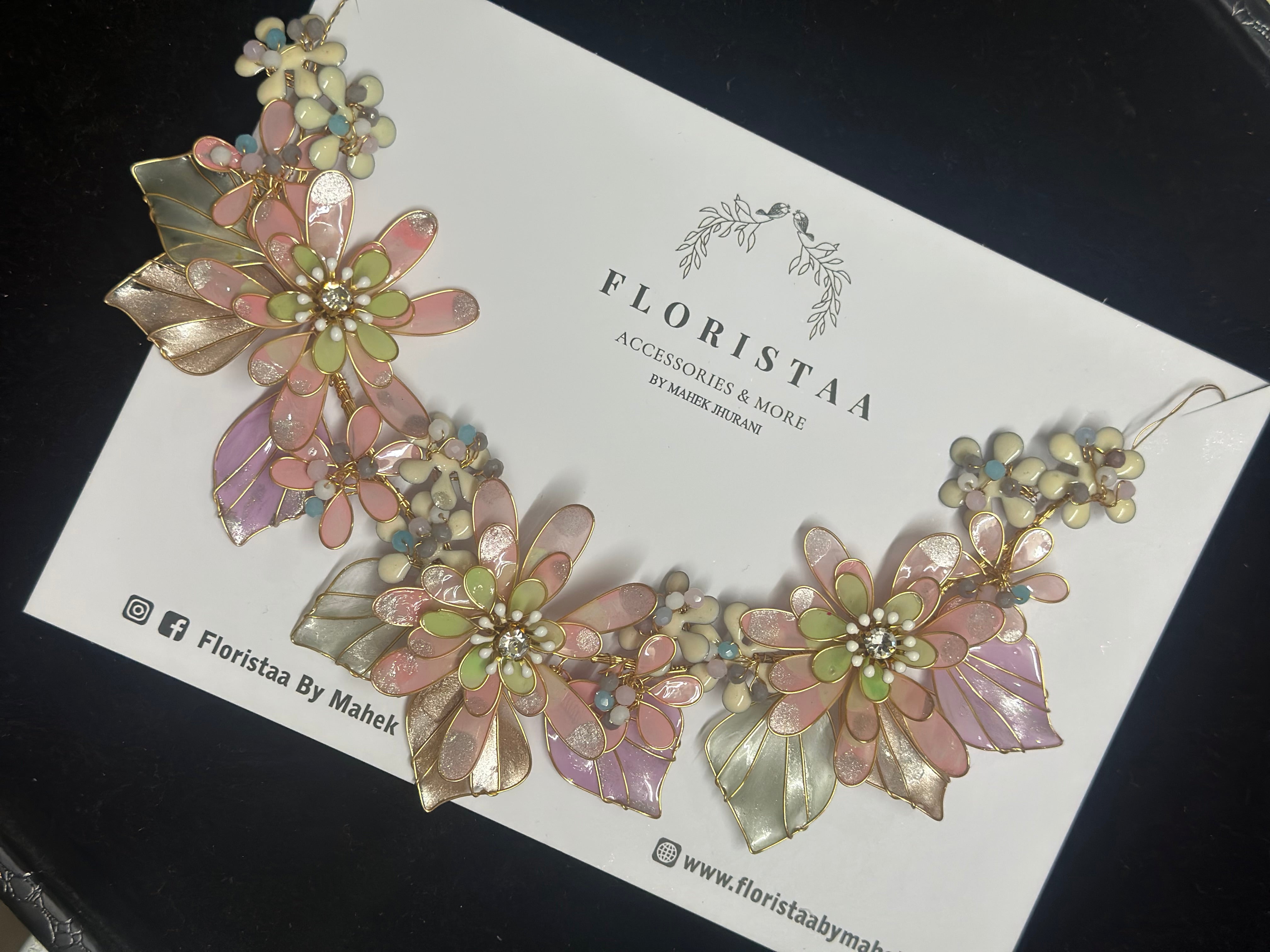 MATERIAL DETAILS - resin , plated wire , pearls and crystals