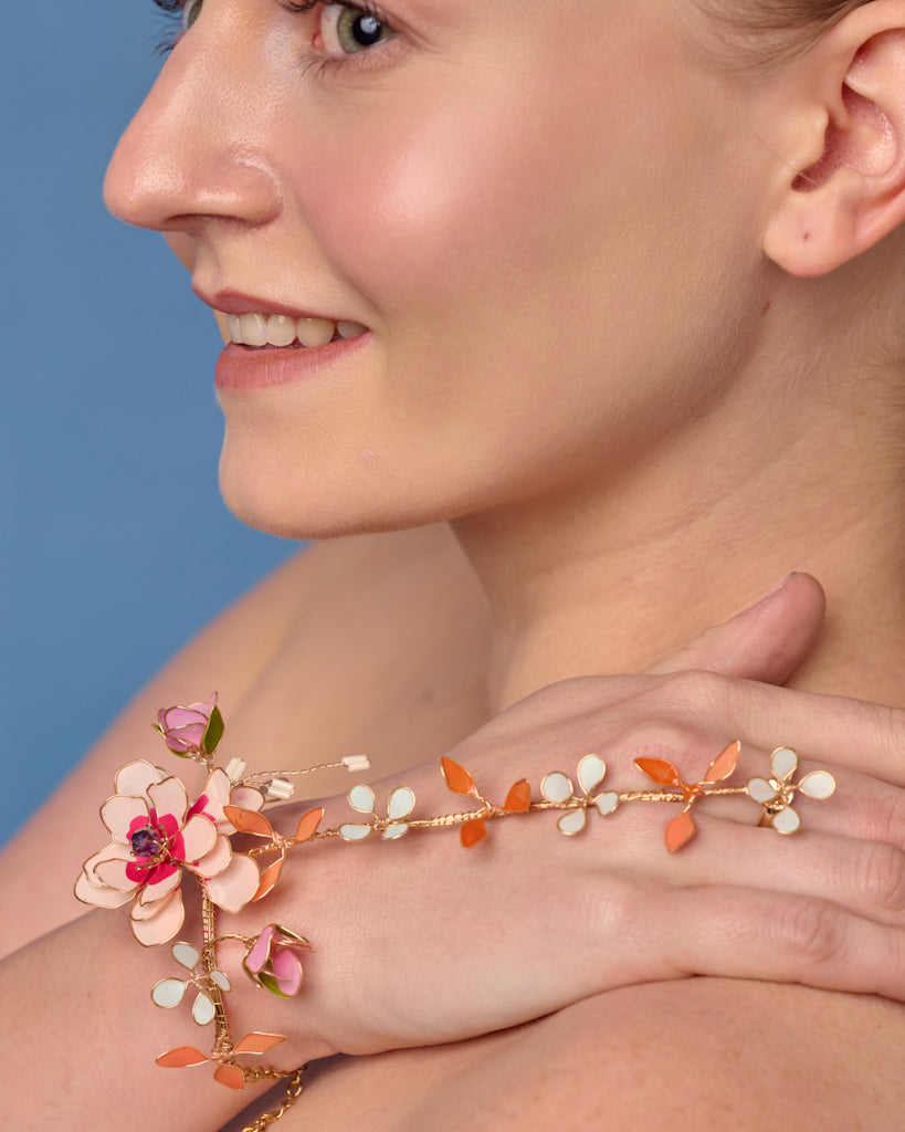 The Elinor Bridal Set brings together the earrings, necklace, maangtika, and hathphool into a complete, cohesive ensemble. Each resin piece echoes the collection’s signature floral-inspired forms, creating a beautifully harmonious look. Elegant, airy, and luxuriously refined, the Elinor Set is perfect for brides seeking delicate beauty with elevated craftsmanship.