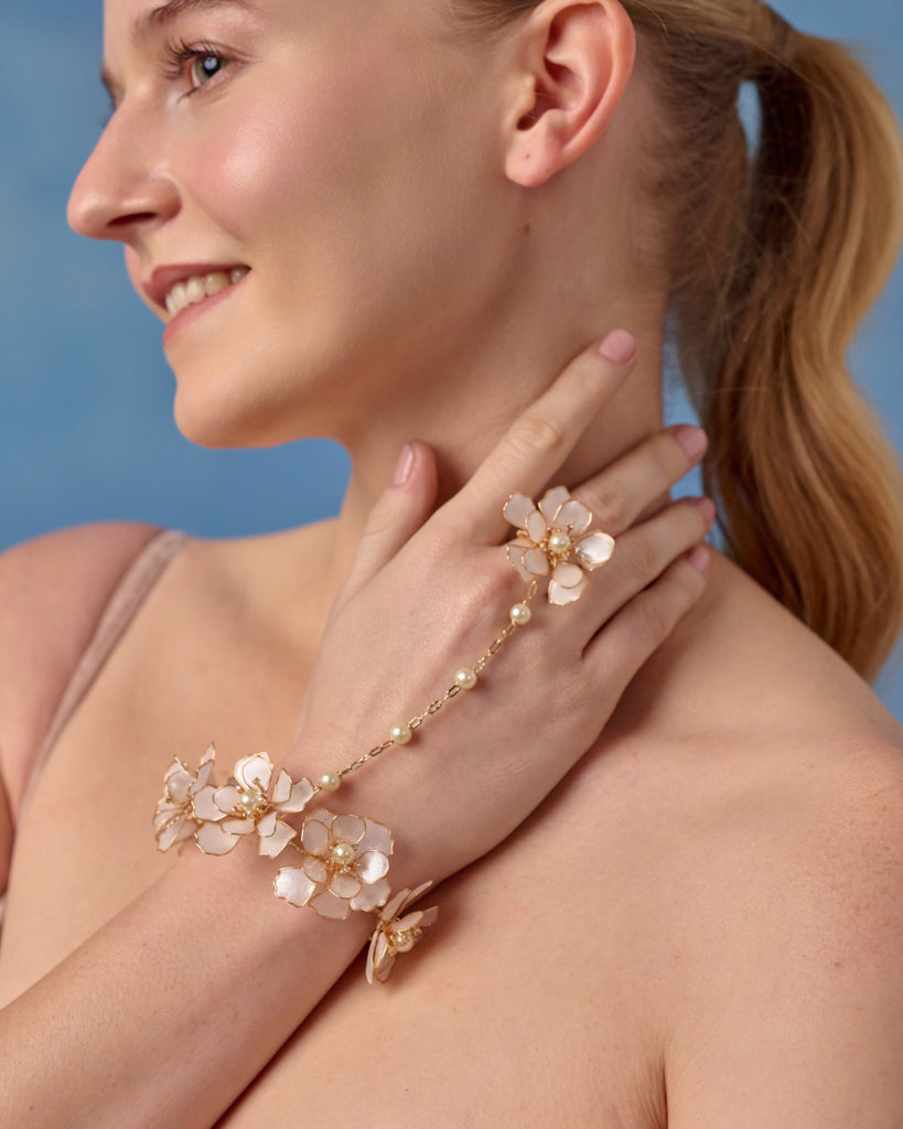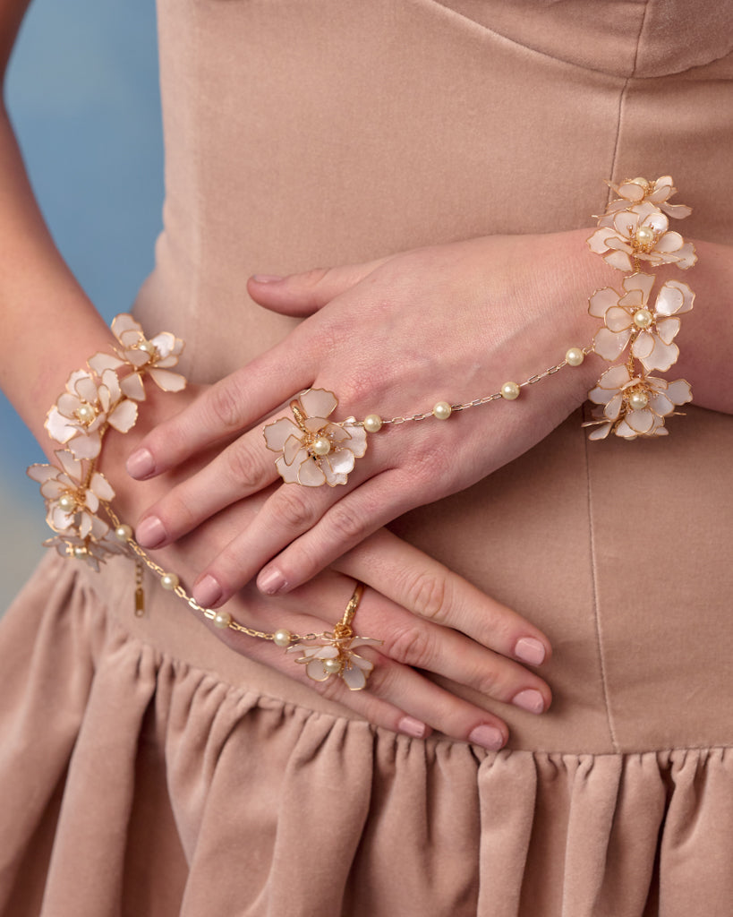 The Lumi Hathphool reimagines traditional hand-jewellery with a sleek, contemporary silhouette. Resin motifs cascade across the hand with a soft glow, adding subtle drama without heaviness. Perfect for intimate ceremonies, haldi mornings, and bridal portraits, Lumi celebrates the beauty of every gesture.