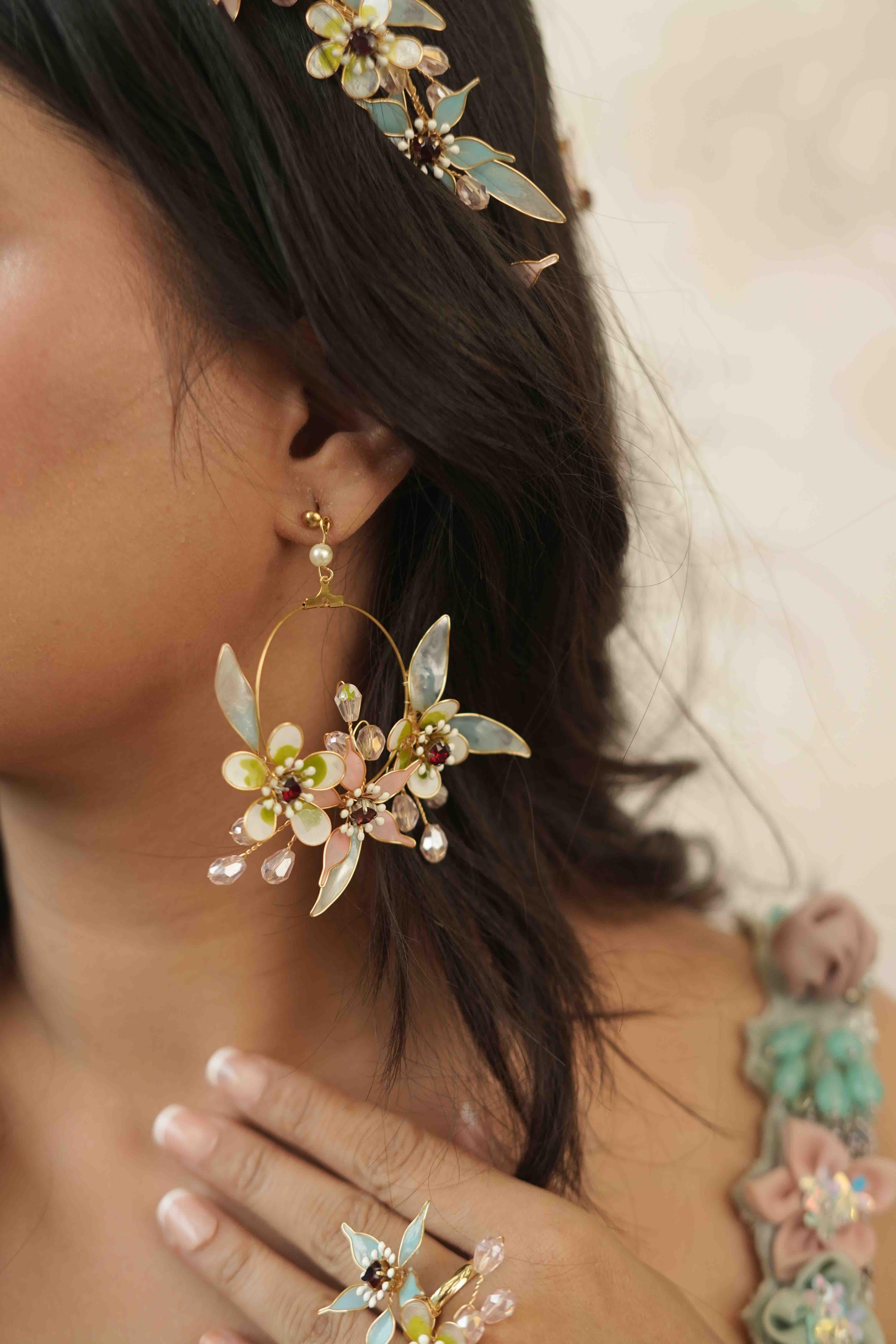Care instructions: Our jewellery collection is crafted entirely from resin. Since it’s resin jewellery it is very fragile; please exercise care by avoiding contact with water, perfumes, and vigorous movements.
