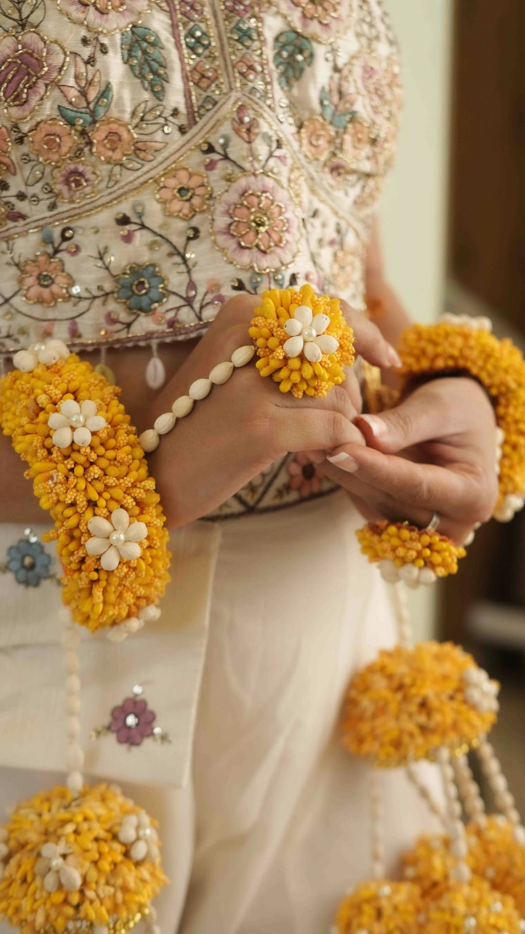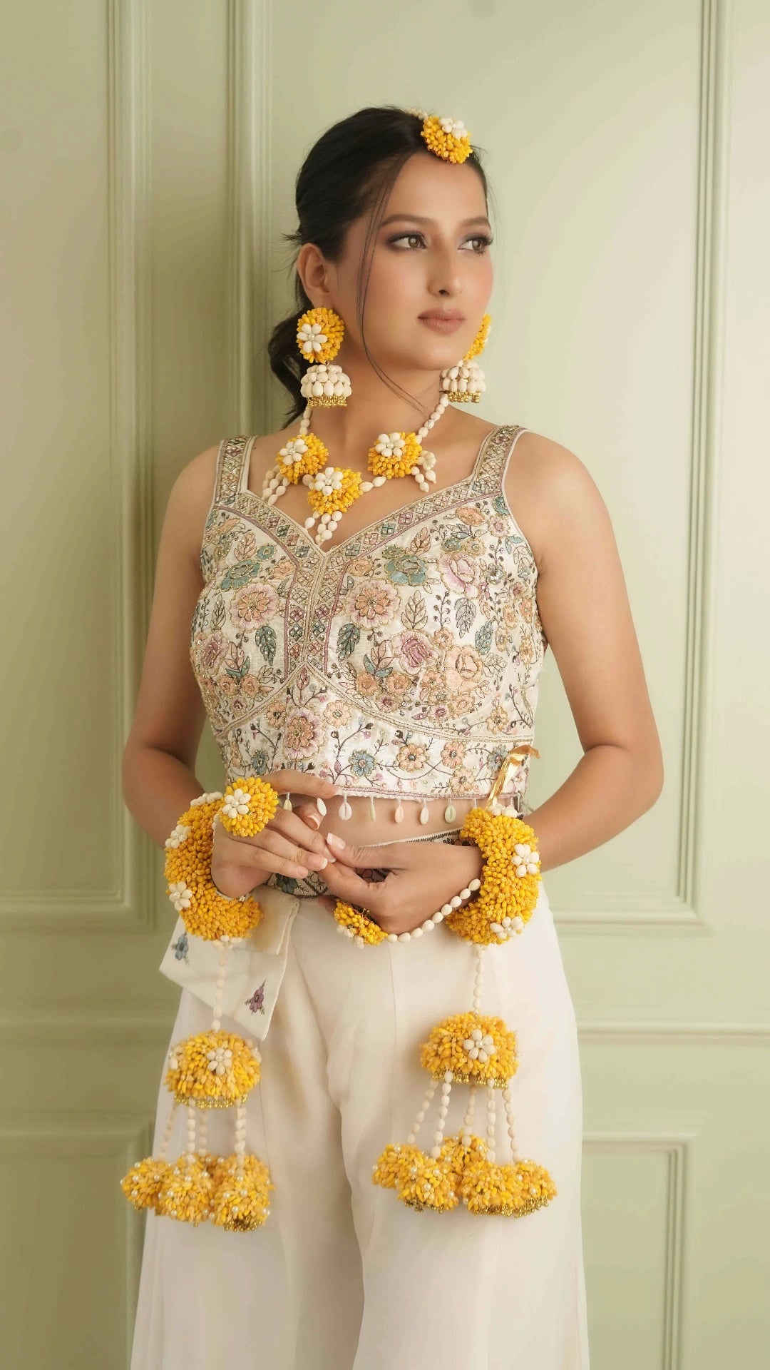 Elevate your traditional look with our Nitya haathphool+kallire set. Made with intricate craftsmanship, this set features a versatile haathphool and kallire for complete accessory coordination. Enhance your style with this perfect combination of elegance and tradition.