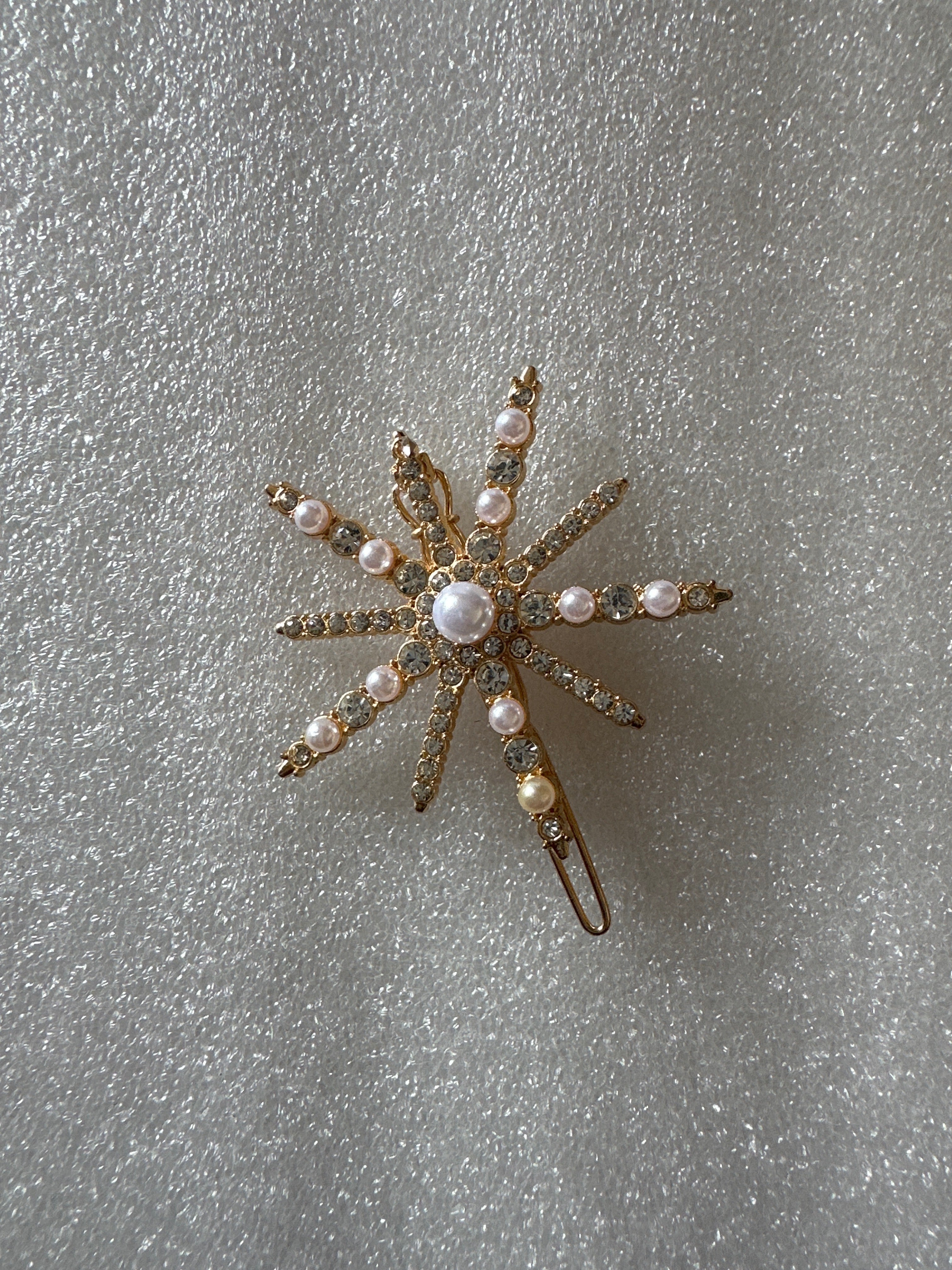 Introducing our stunning starfish shaped hairclip! This beautiful hair accessory is crafted with high-quality cubic zirconia stones that shimmer and sparkle like diamonds. The starfish design is intricately detailed, adding a touch of elegance and sophistication to any hairstyle.