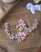 The Zelia Kanchain is a delicate extension of floral-inspired artistry. Resin motifs flow along a fine chain, draping gracefully over the ear to create a romantic, airy profile. Thoughtfully crafted to balance sophistication with softness, the Zelia Kanchain enhances traditional bridal styling with a contemporary, luminous touch. It’s a piece that feels both classic and fresh — perfect for the bride who loves understated luxury.
